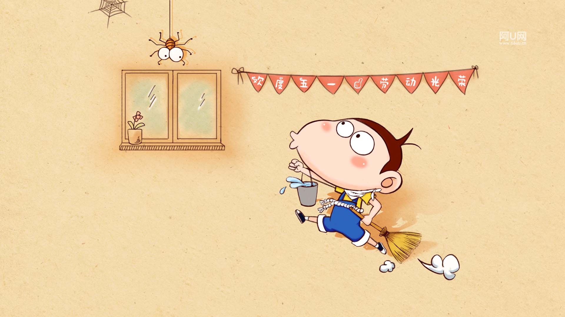 动漫卡通 手绘 劳动节 劳动最光荣 节日 阿U