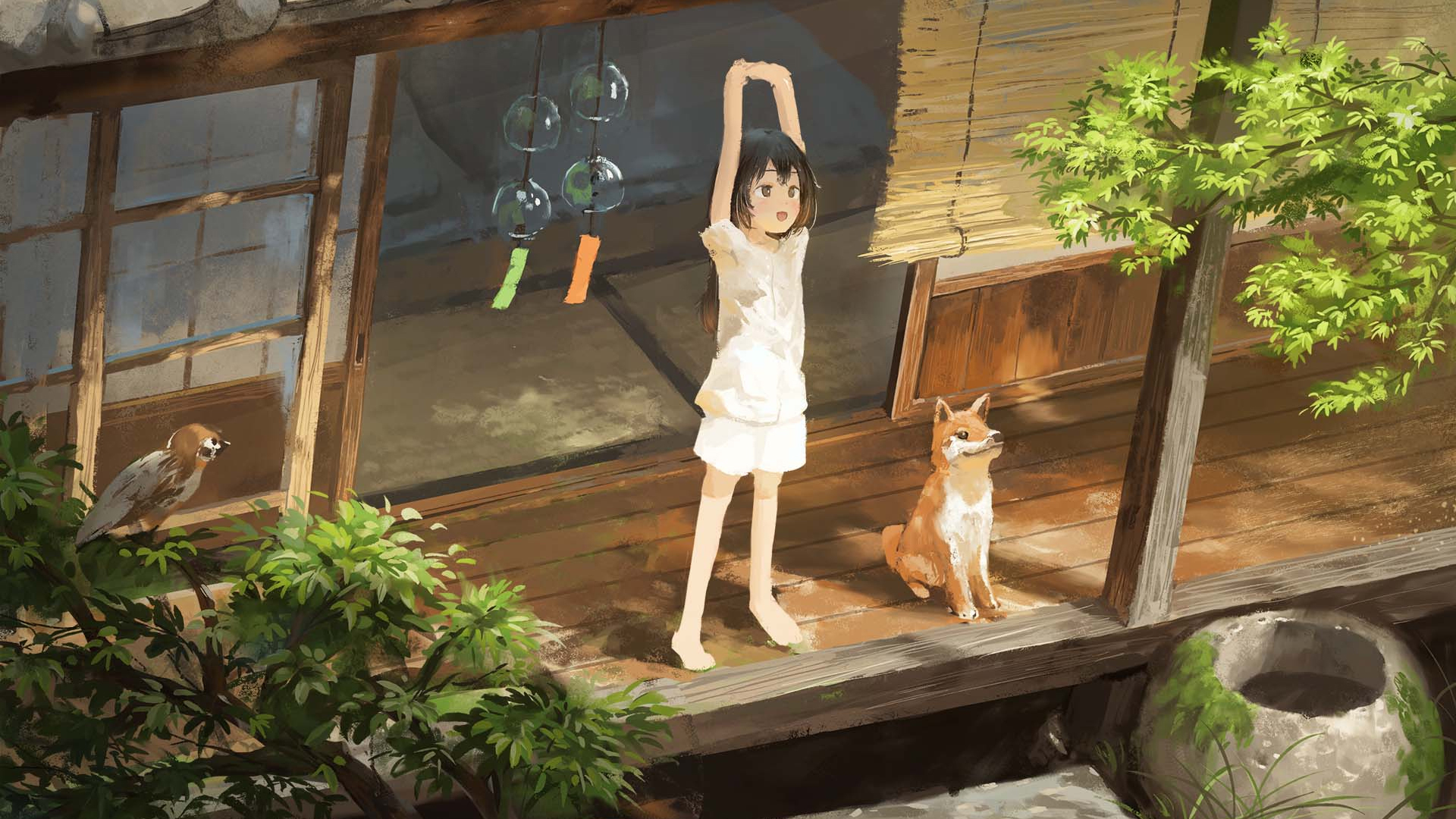 庭院 风铃 小黄 伸懒腰