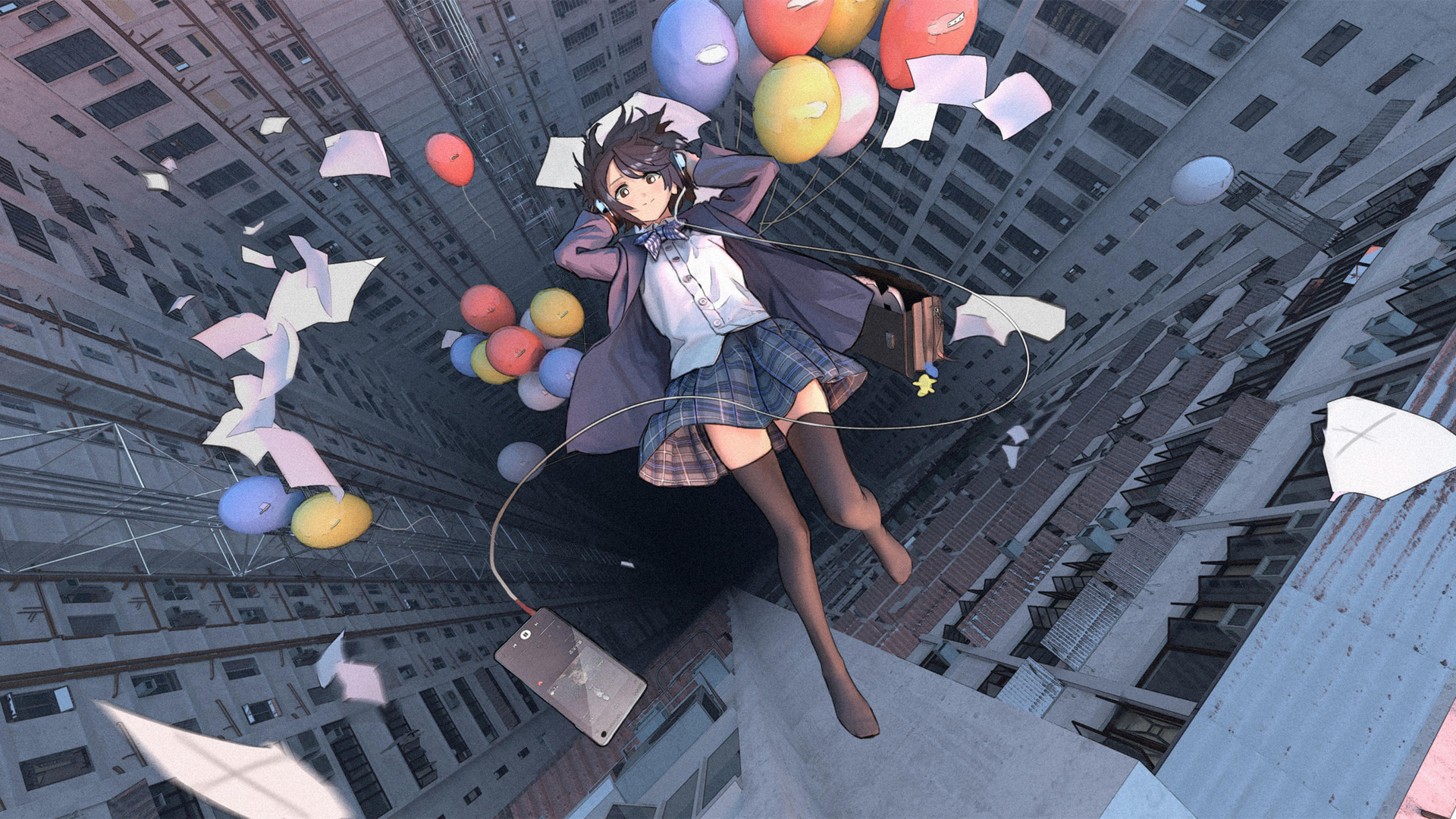 高楼 气球 音乐 耳机