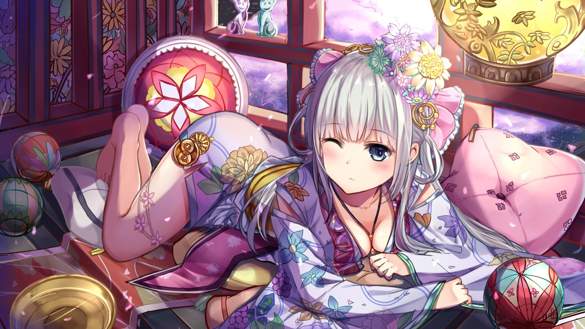 卡通人物 长发 阁楼 慵懒 二次元 可爱