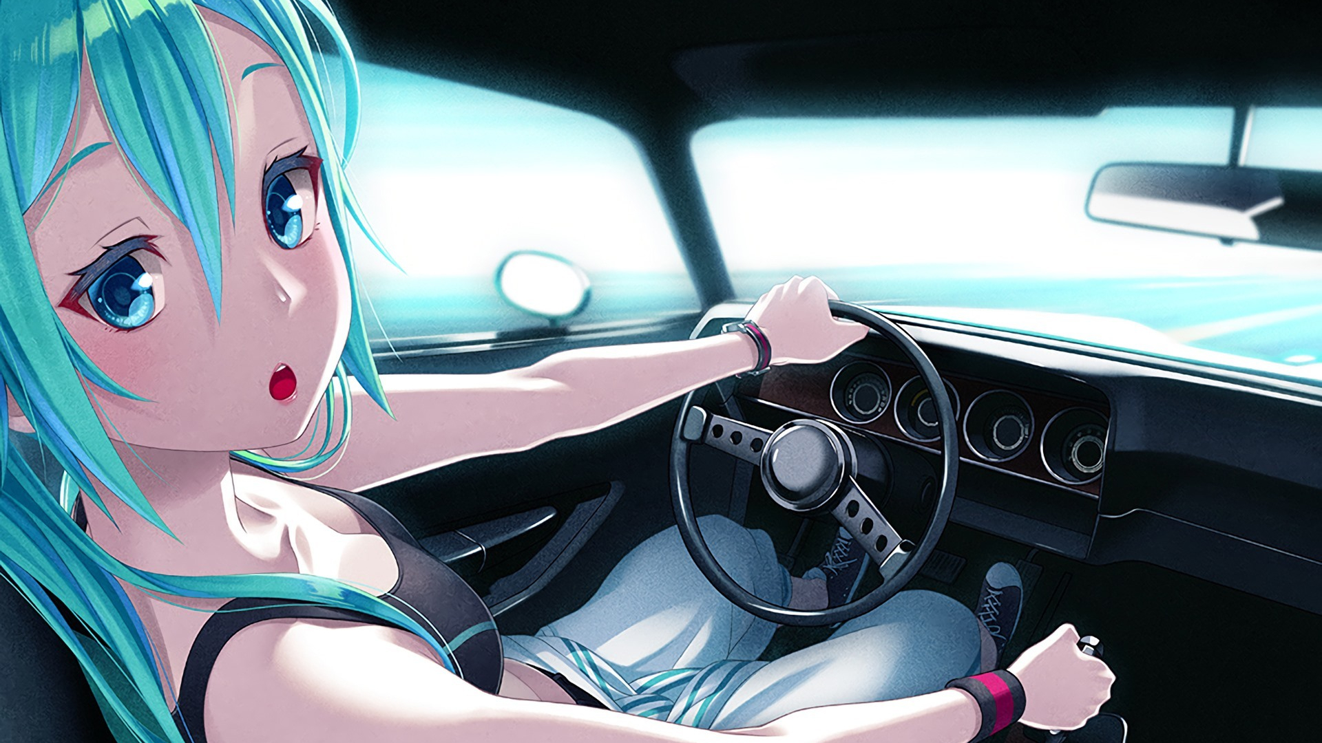 卡通人物 初音 开车 驾驶