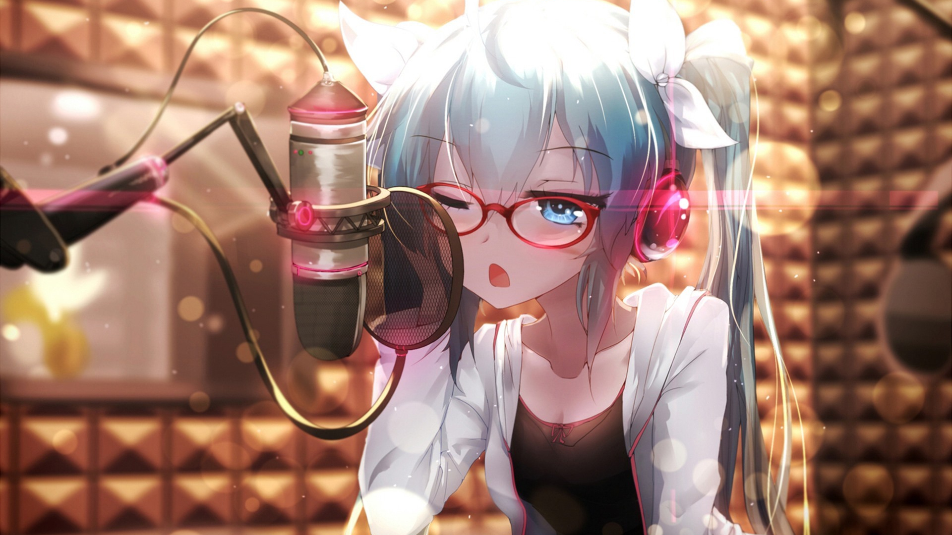 卡通人物 KTV 唱歌 眼镜 耳机