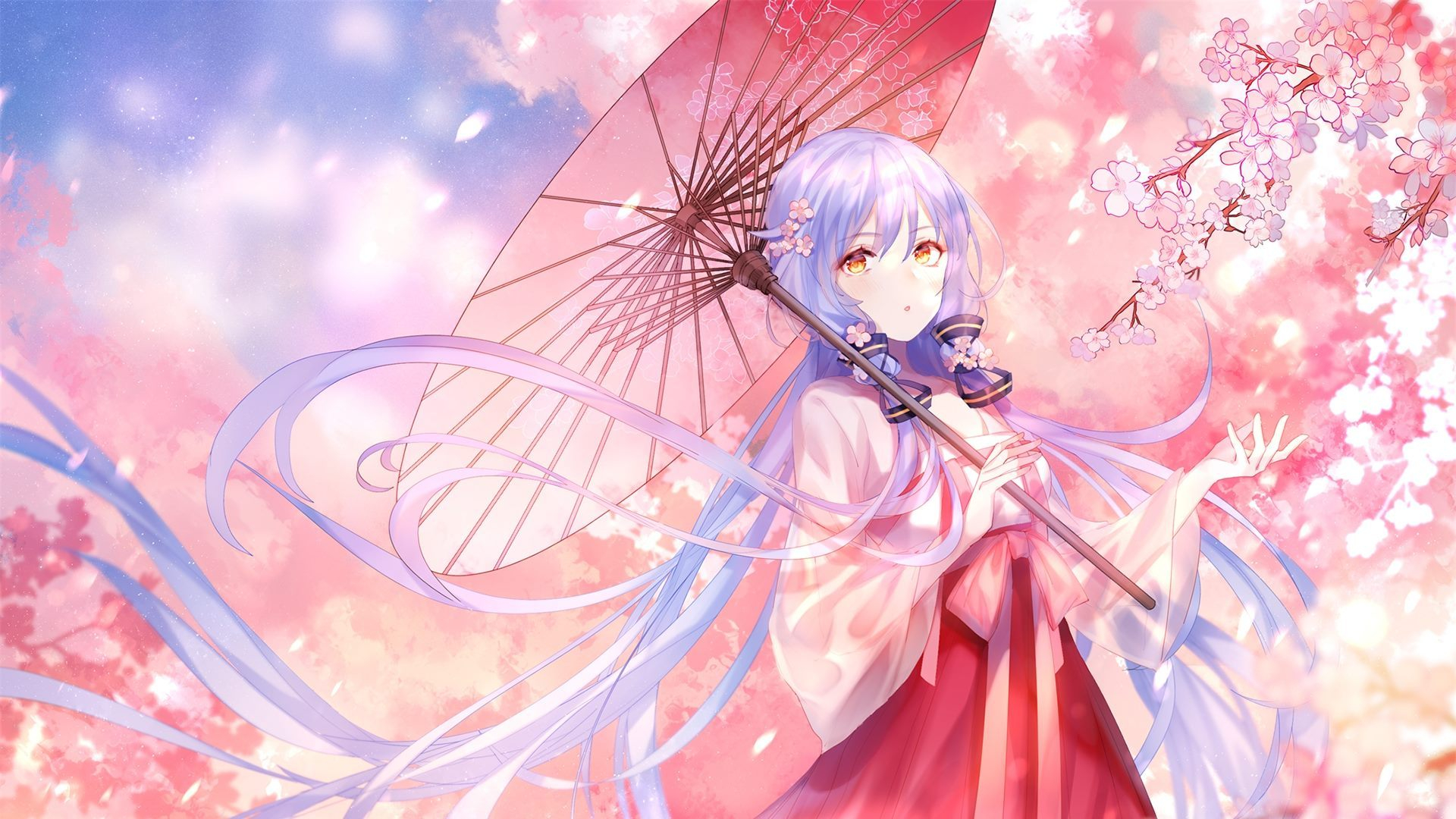 卡通人物 樱花 伞 浪漫