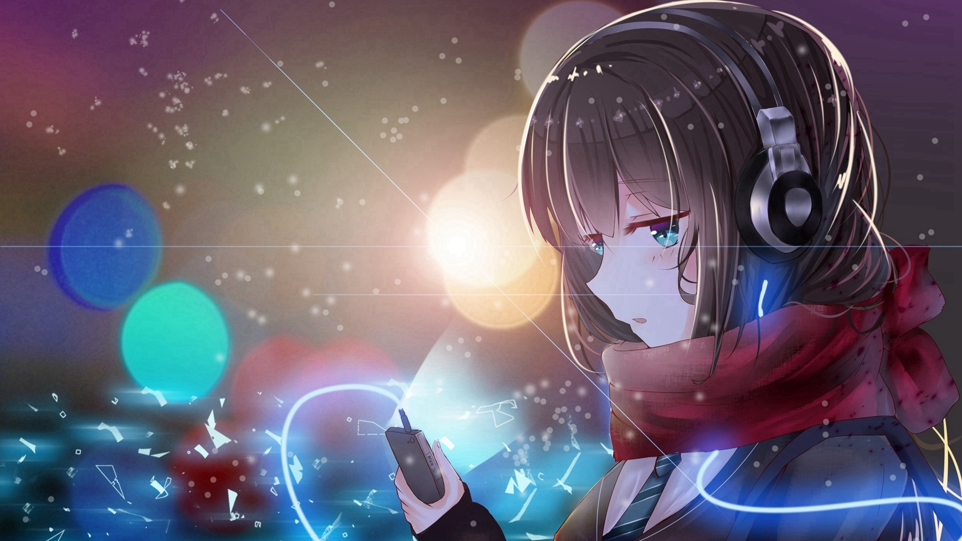 卡通人物 耳机 围巾 灯光 下雪 音乐