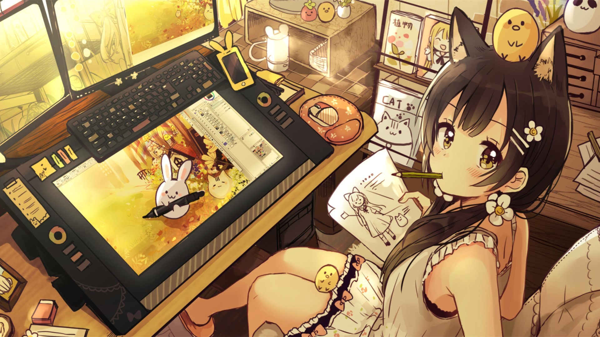 卡通人物 设计 画板 猫耳 电脑 小鸡仔 小兔子