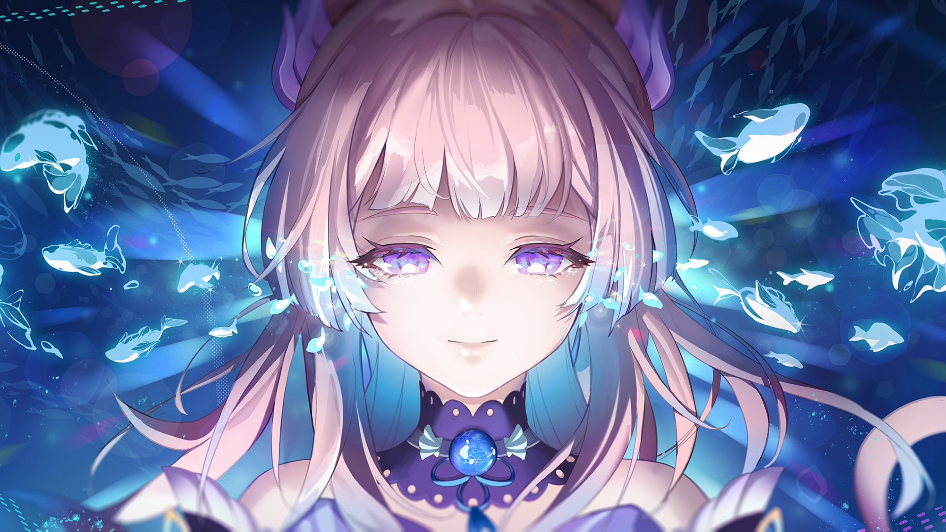 卡通人物 兽耳 拥抱 项链 紫头发