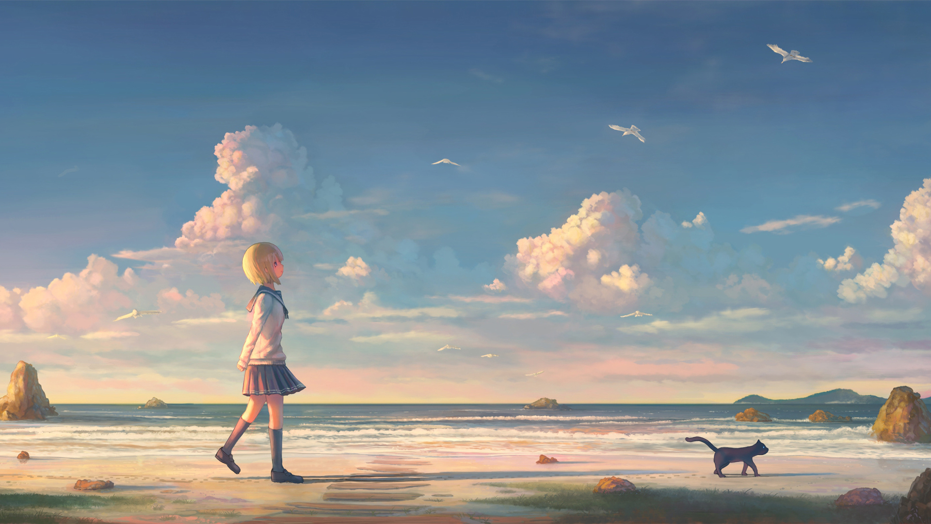 卡通人物 海边 猫