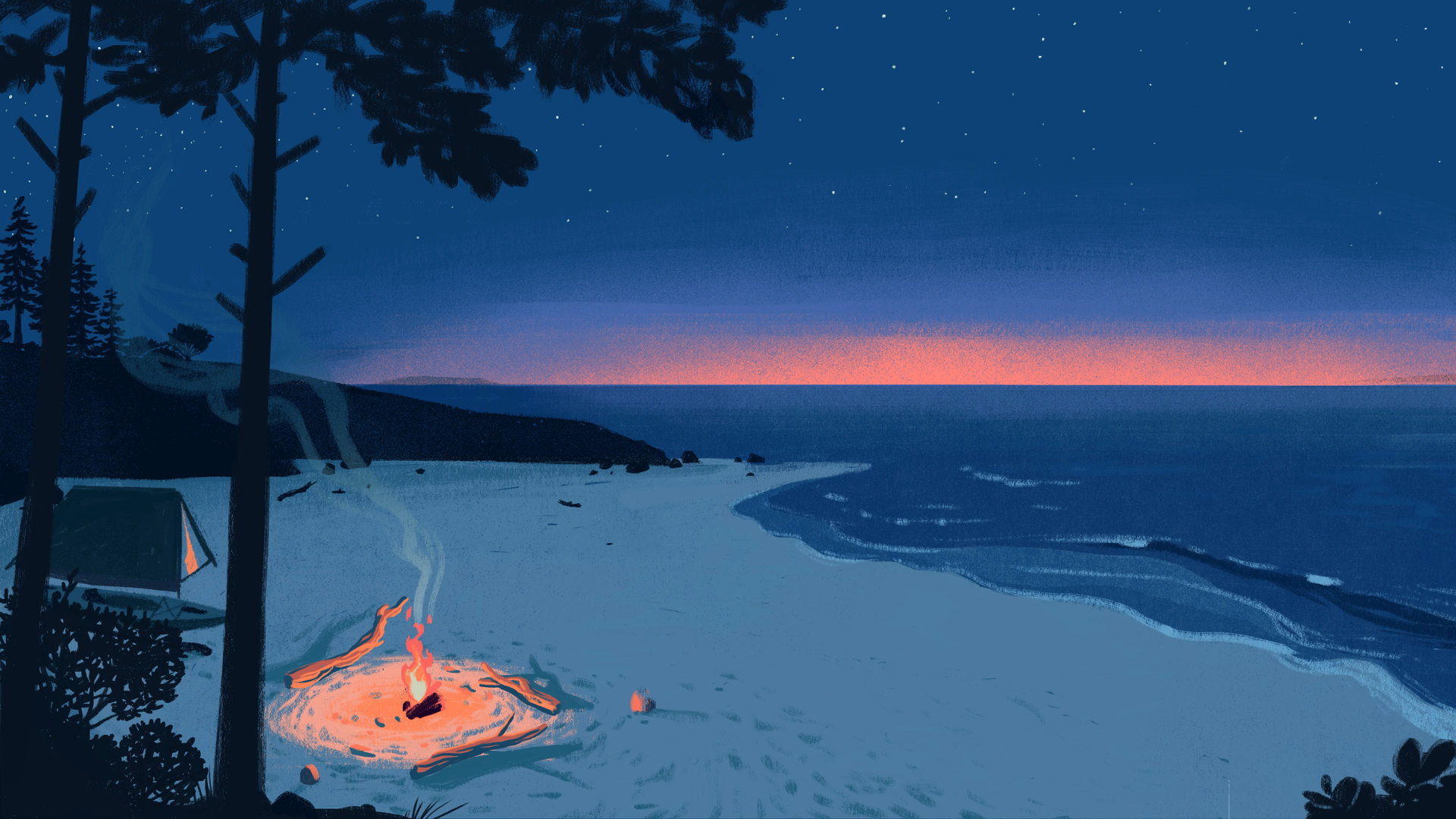 沙滩 海浪 烟火 露营