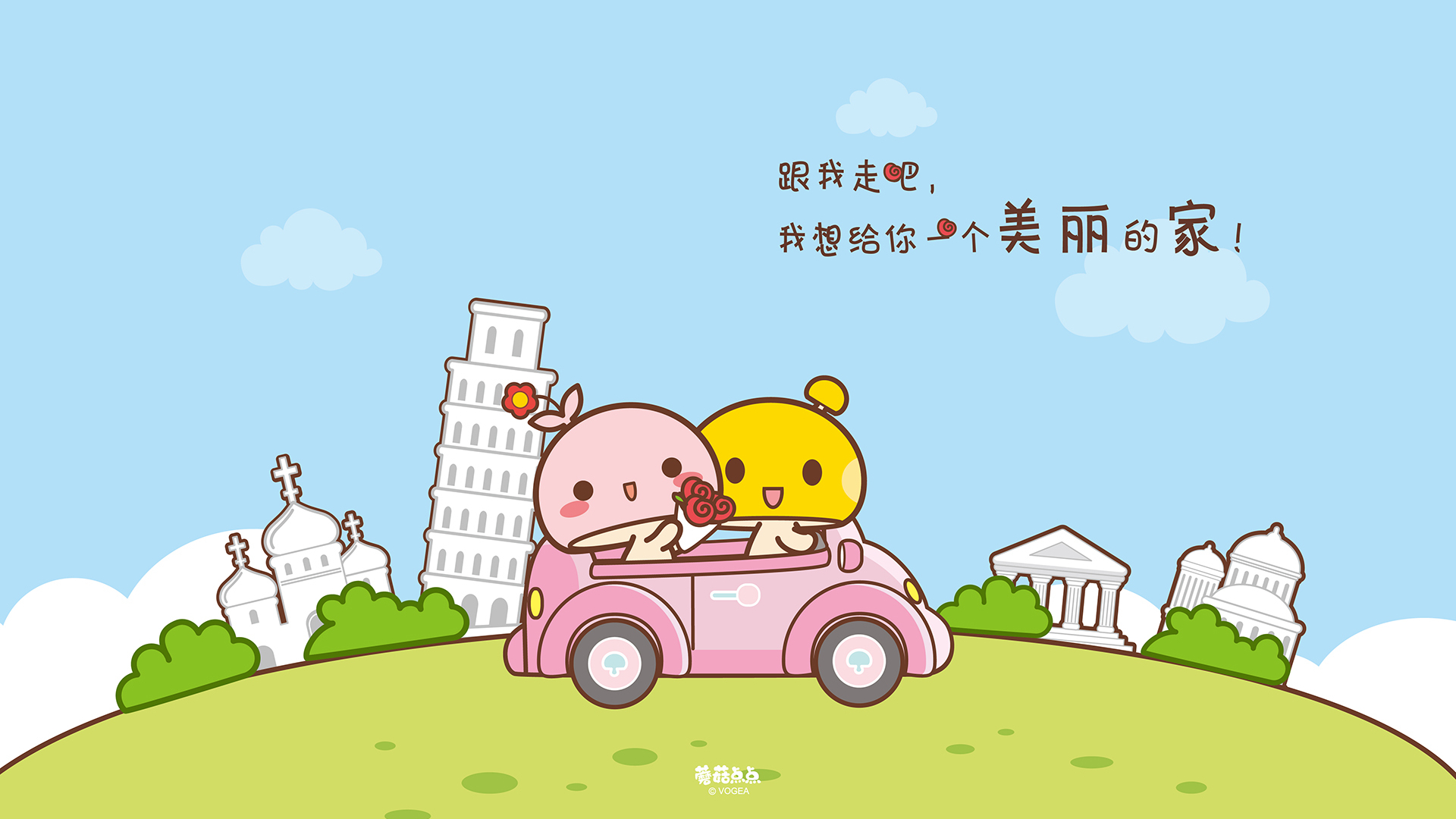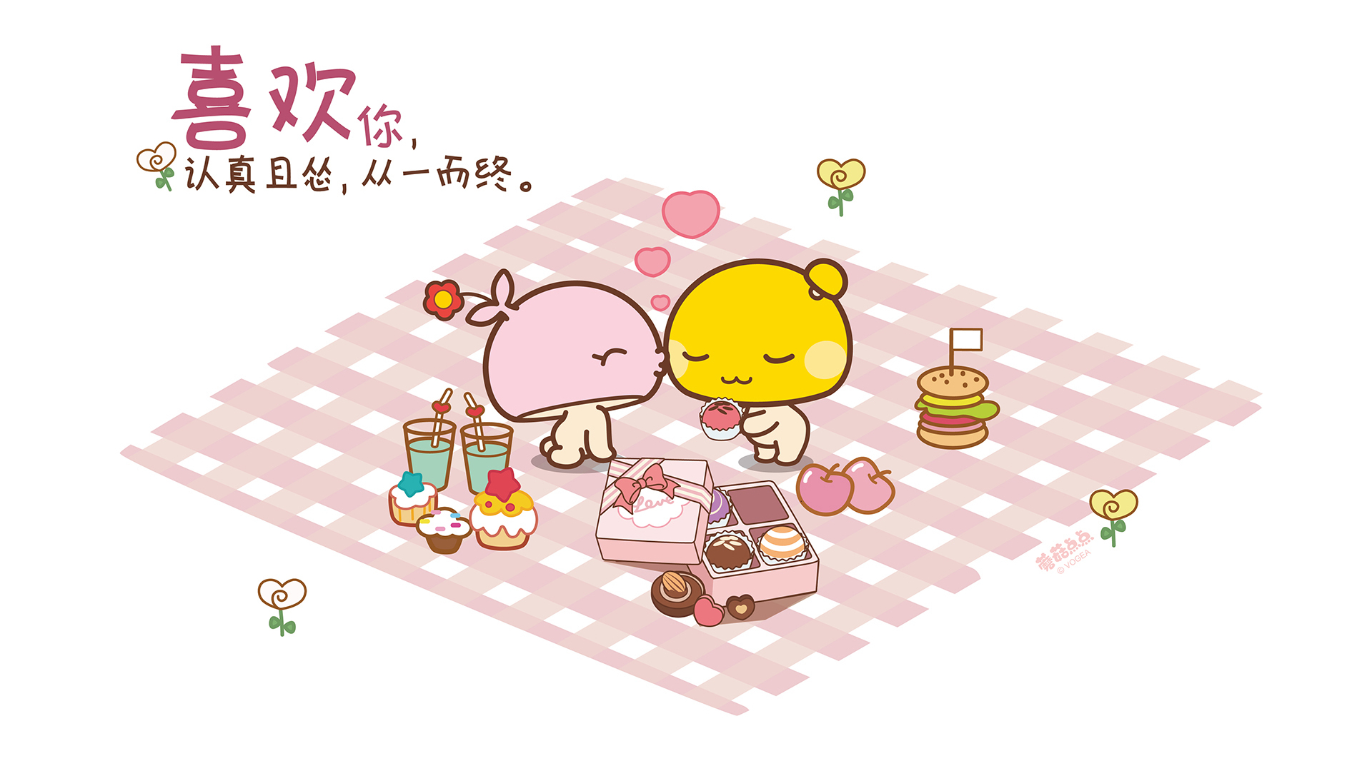 卡通 蘑菇点点 情侣壁纸