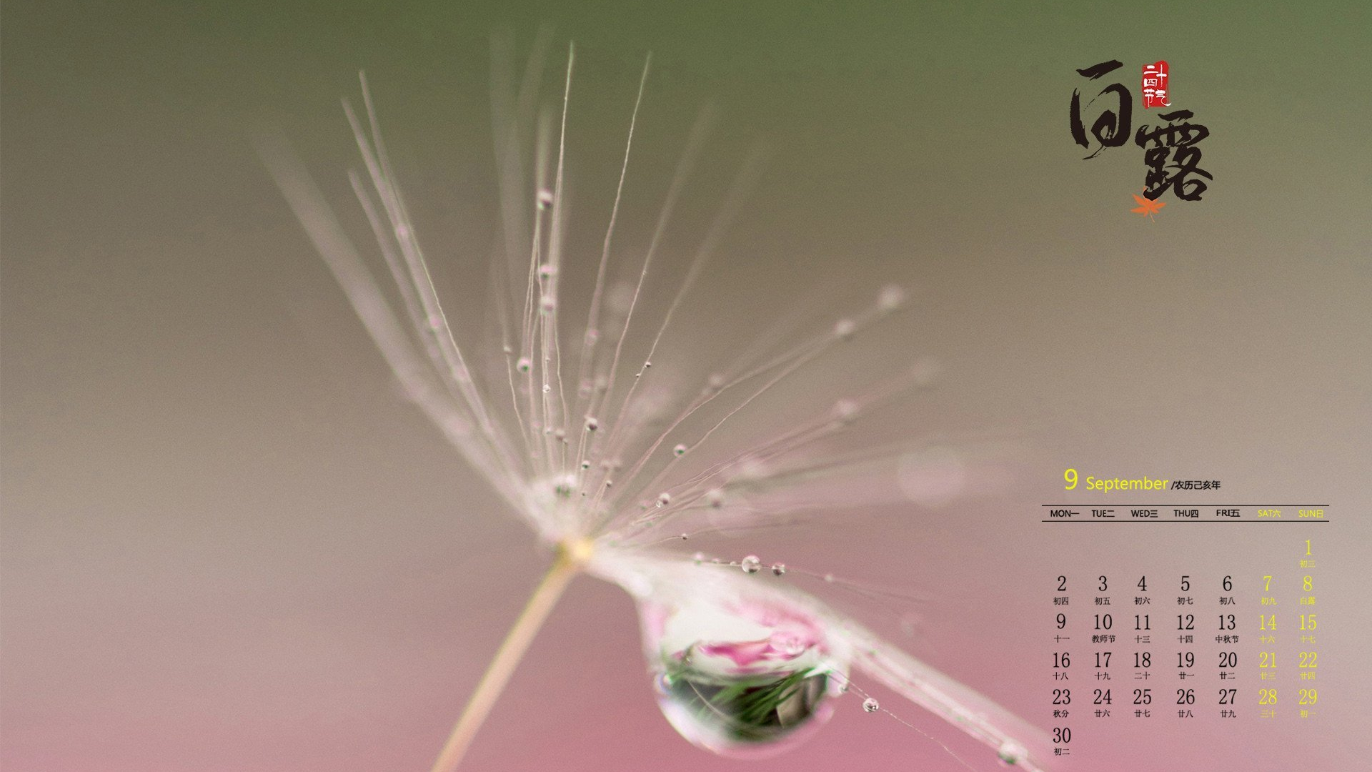 月历壁纸 九月 2019年9月 白露 日历