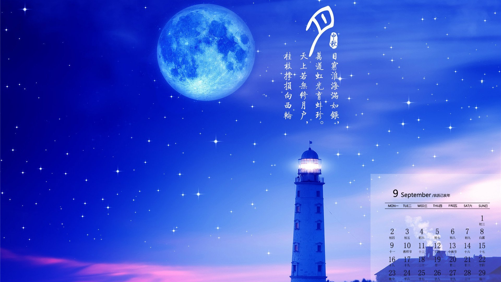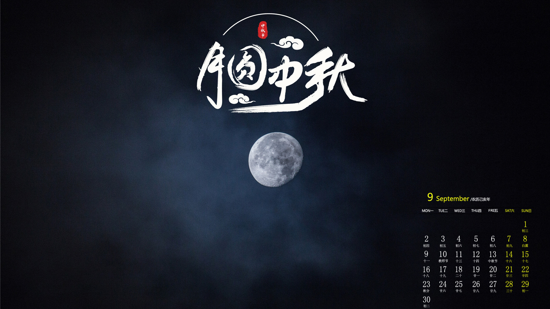 月历壁纸 九月 2019年9月 日历 中秋节