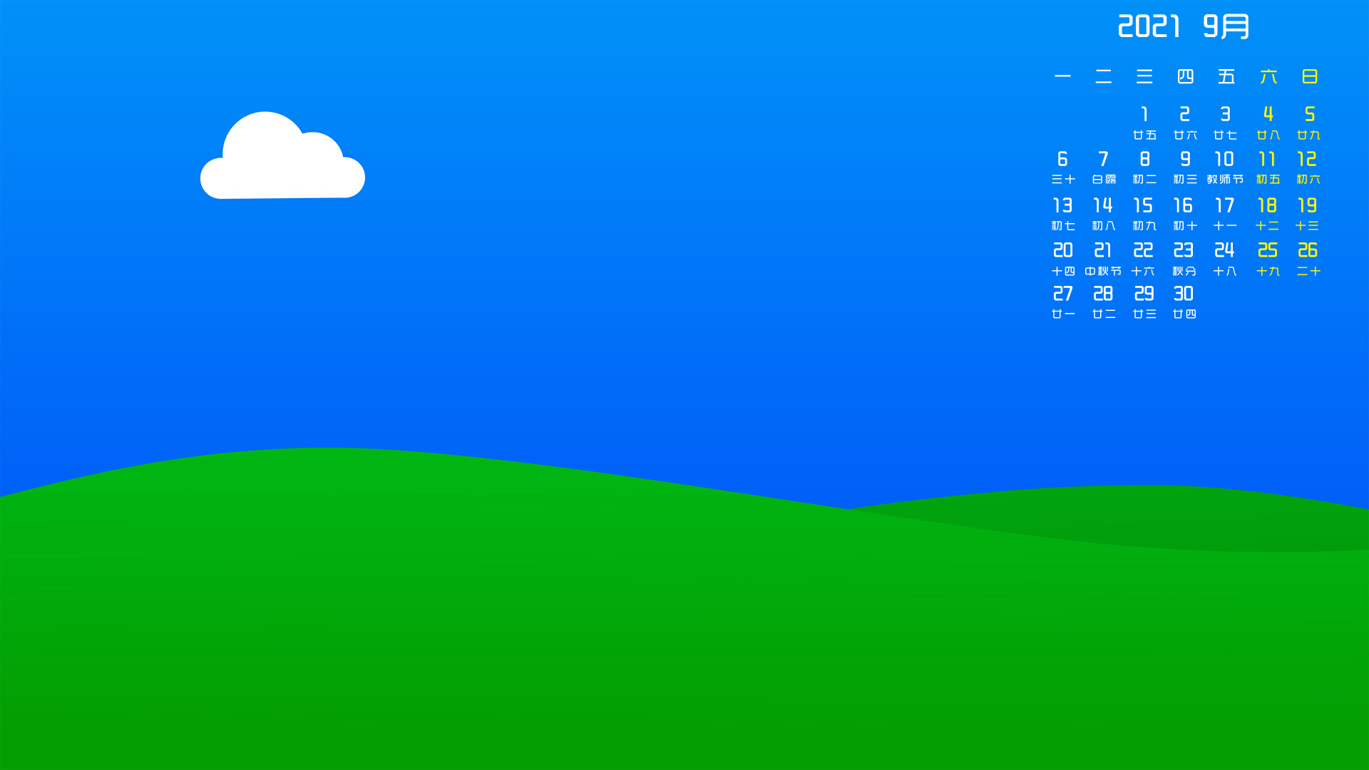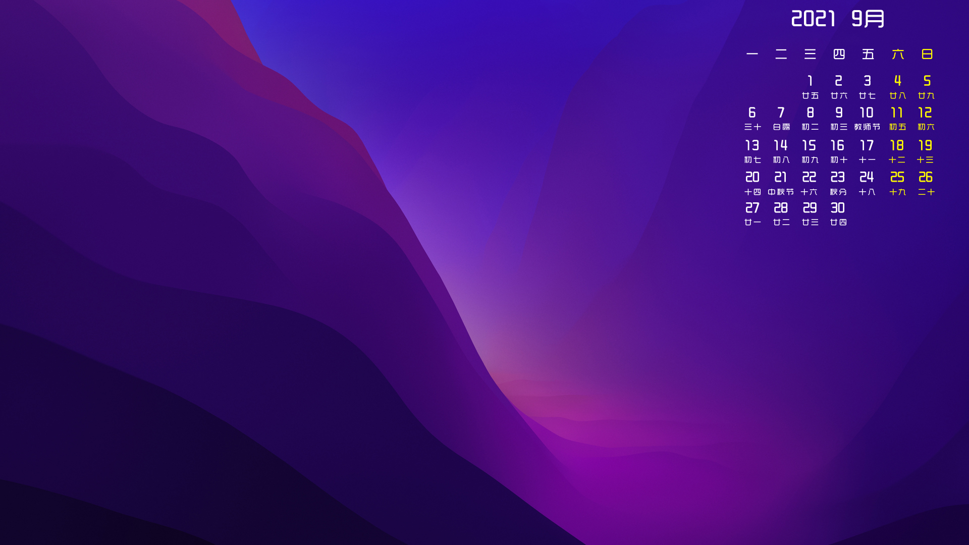 九月 月历