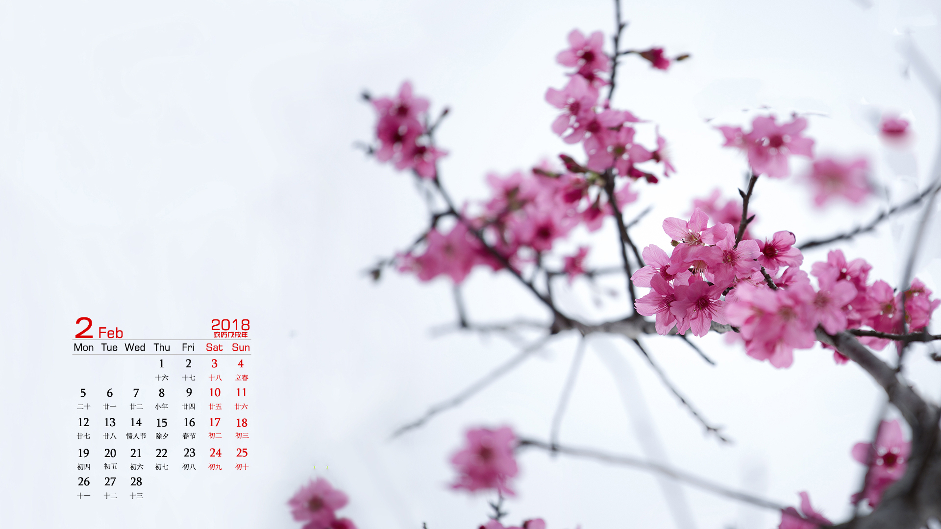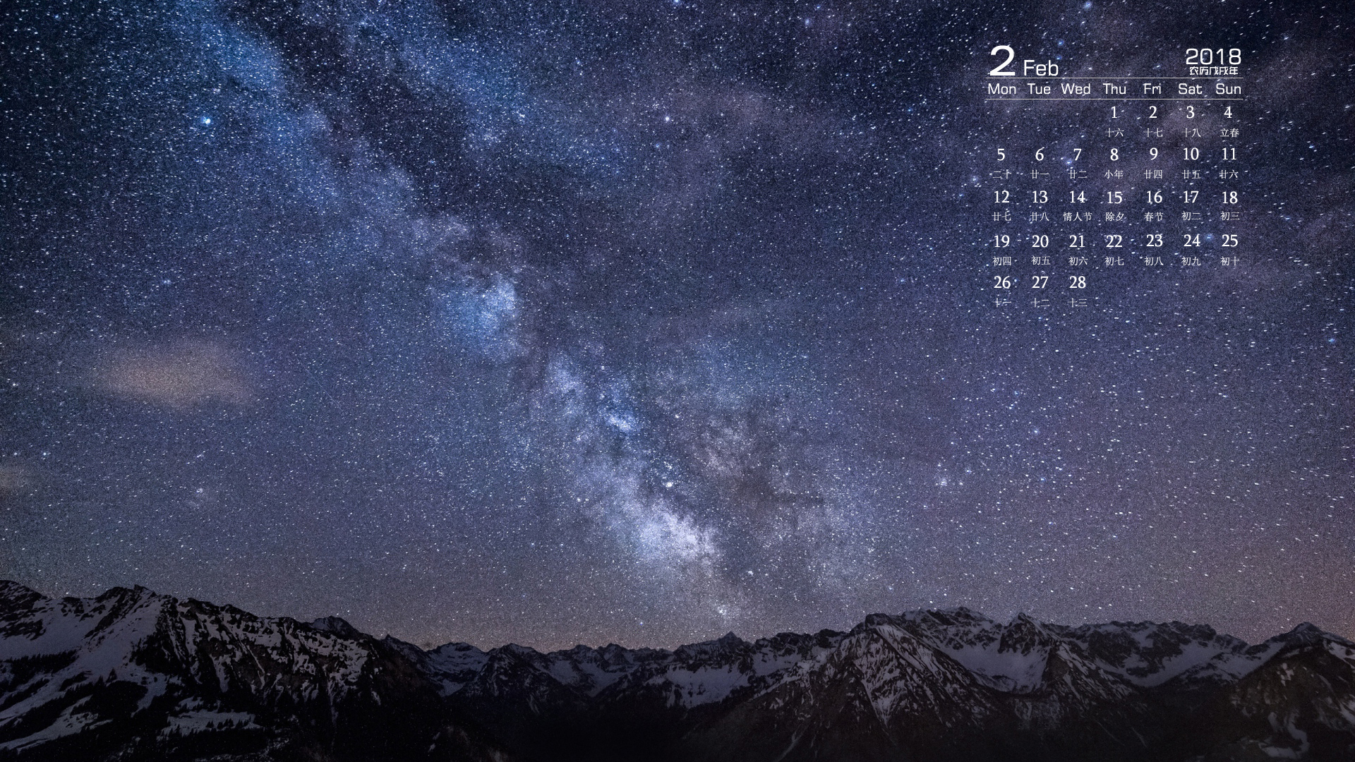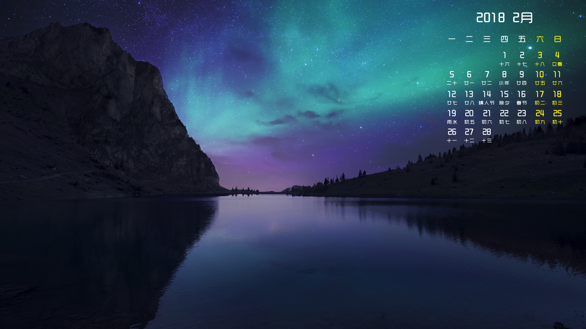 月历 2018年2月