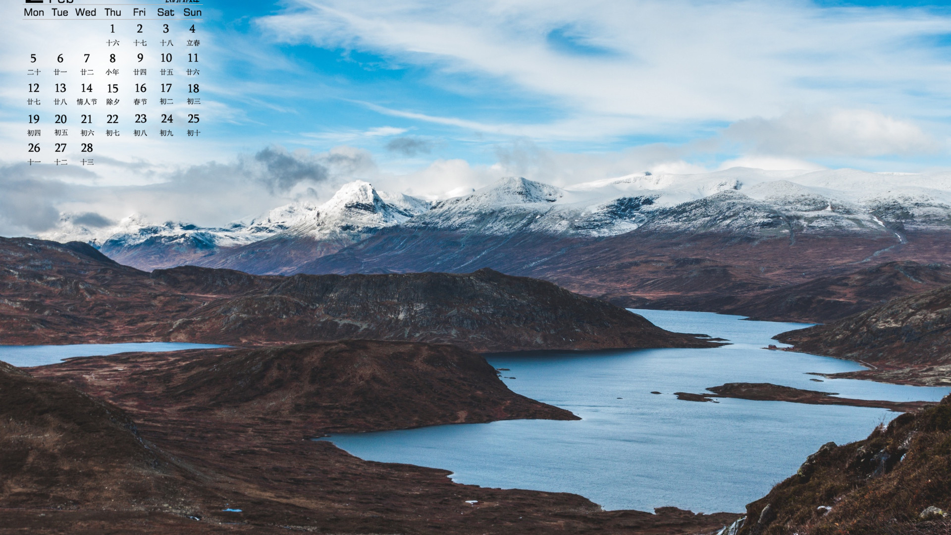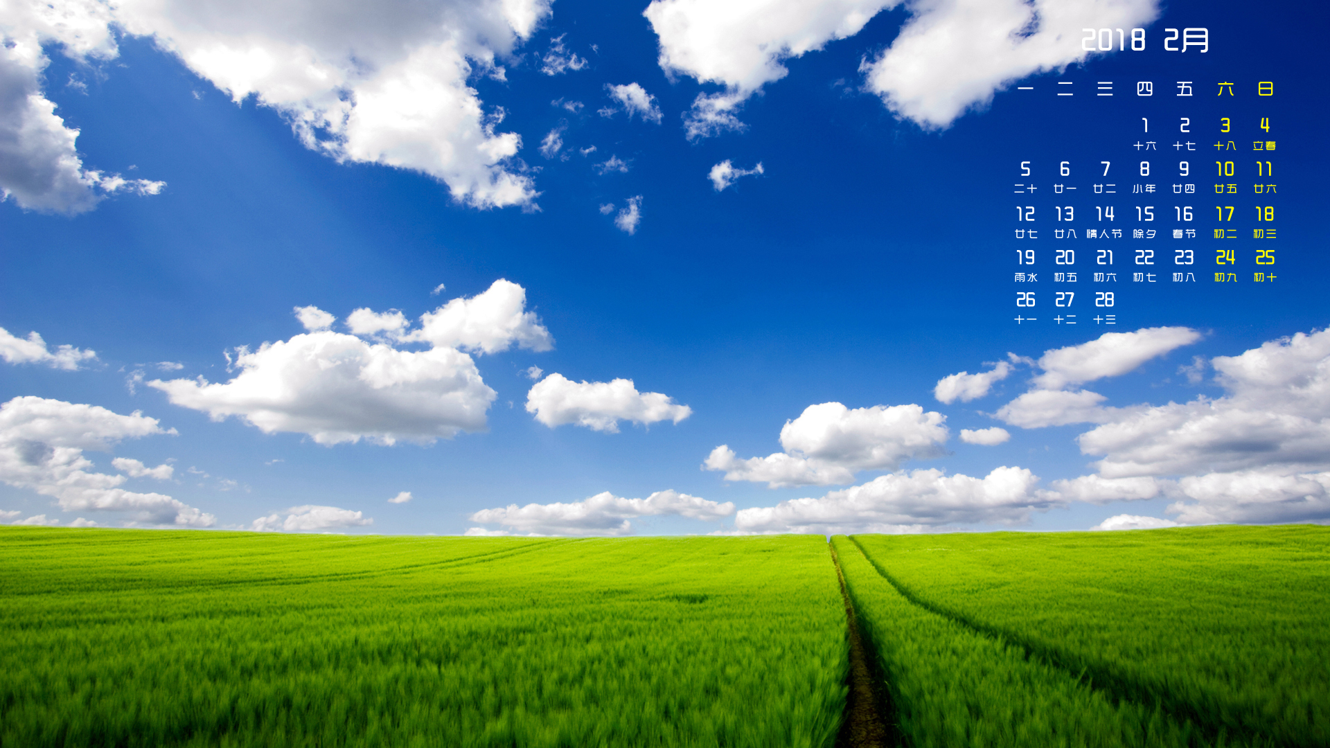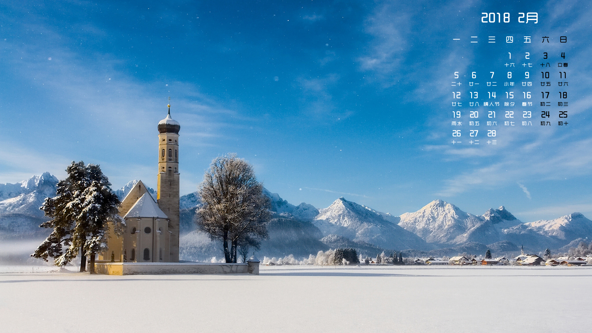 月历 2018年2月
