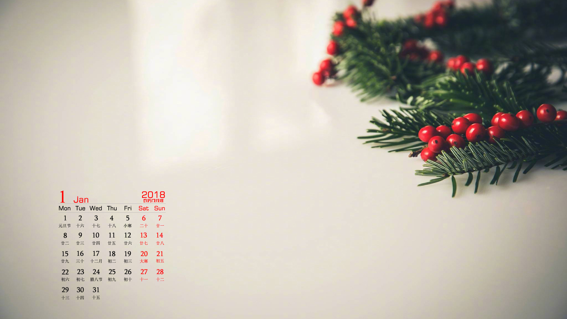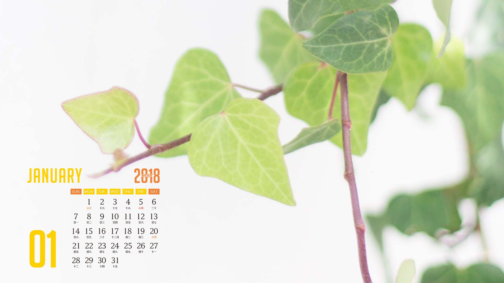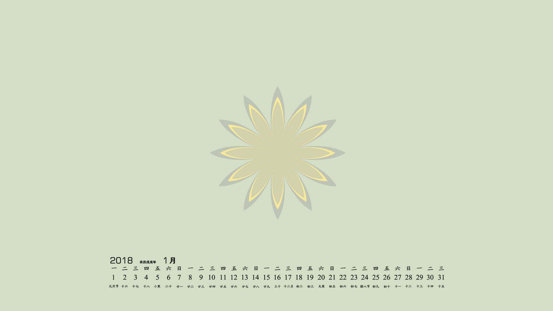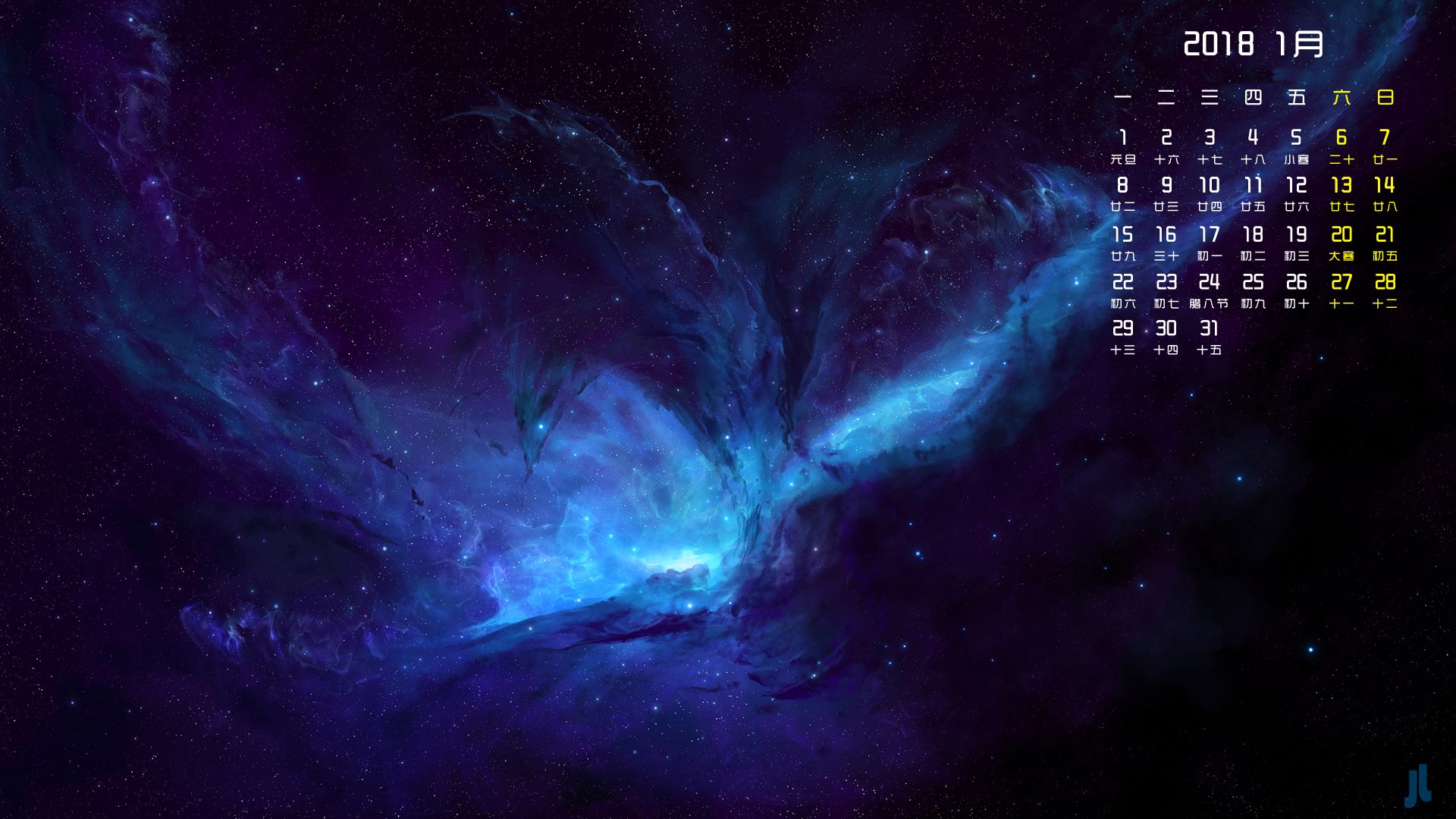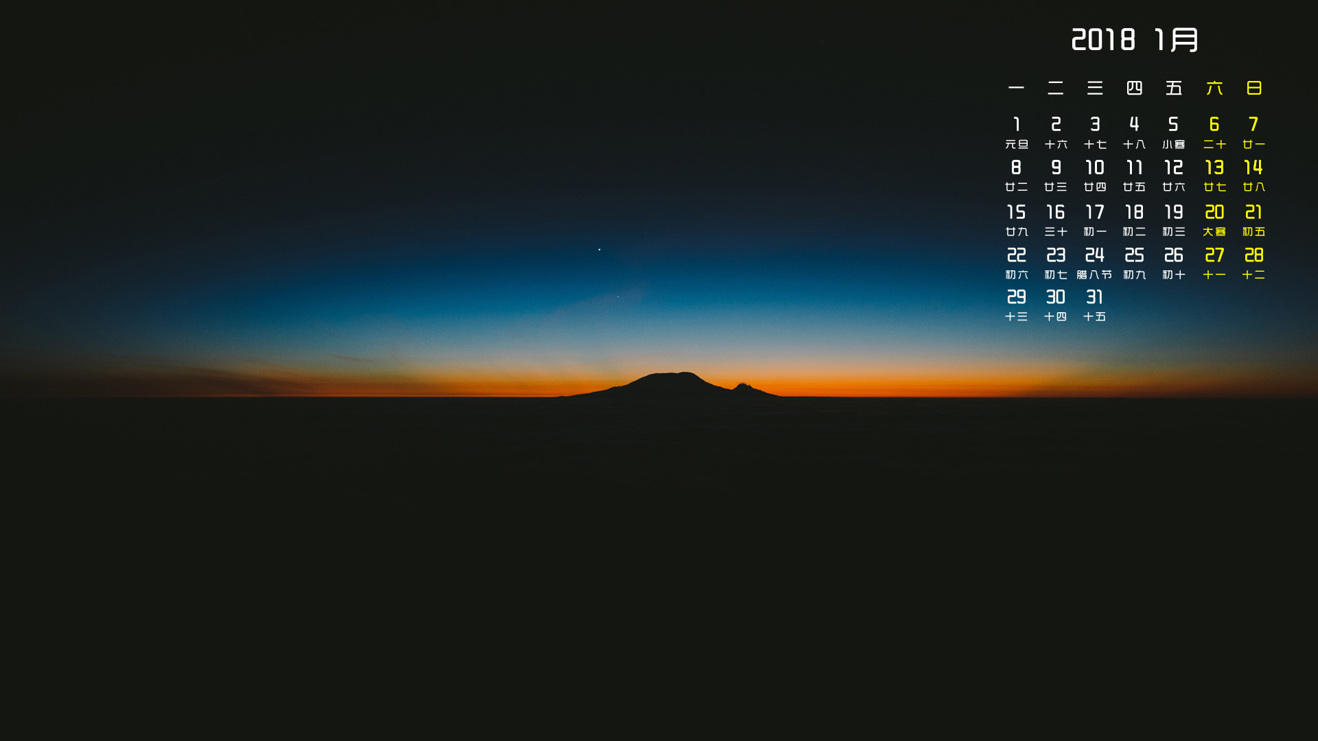 月历 2018年1月