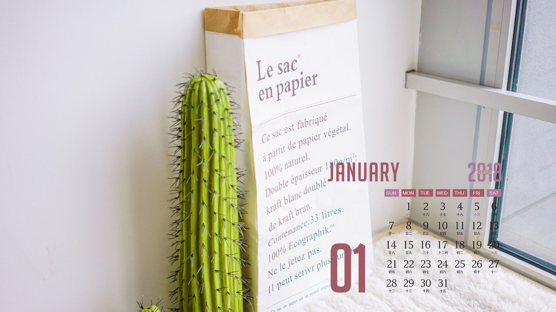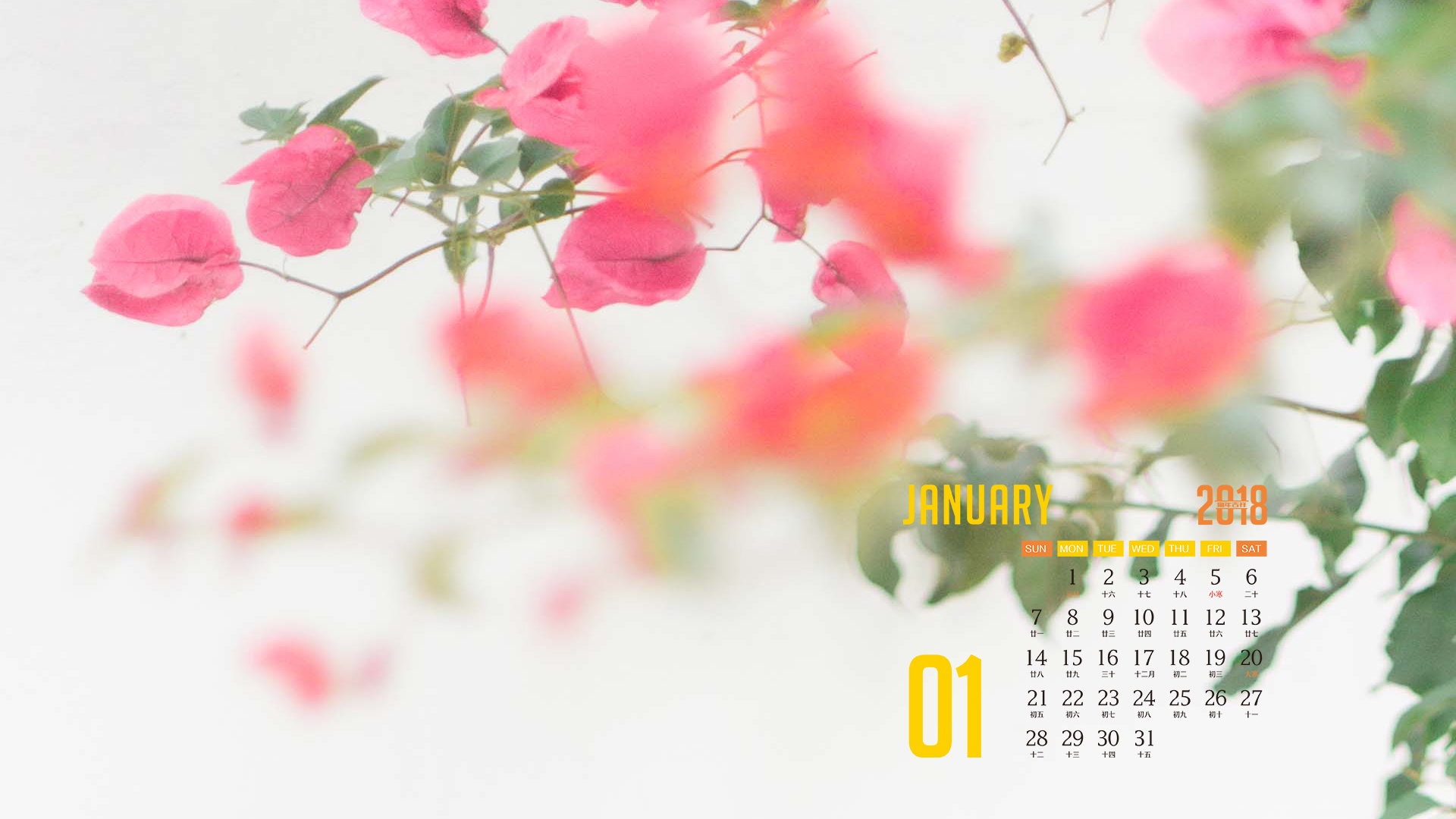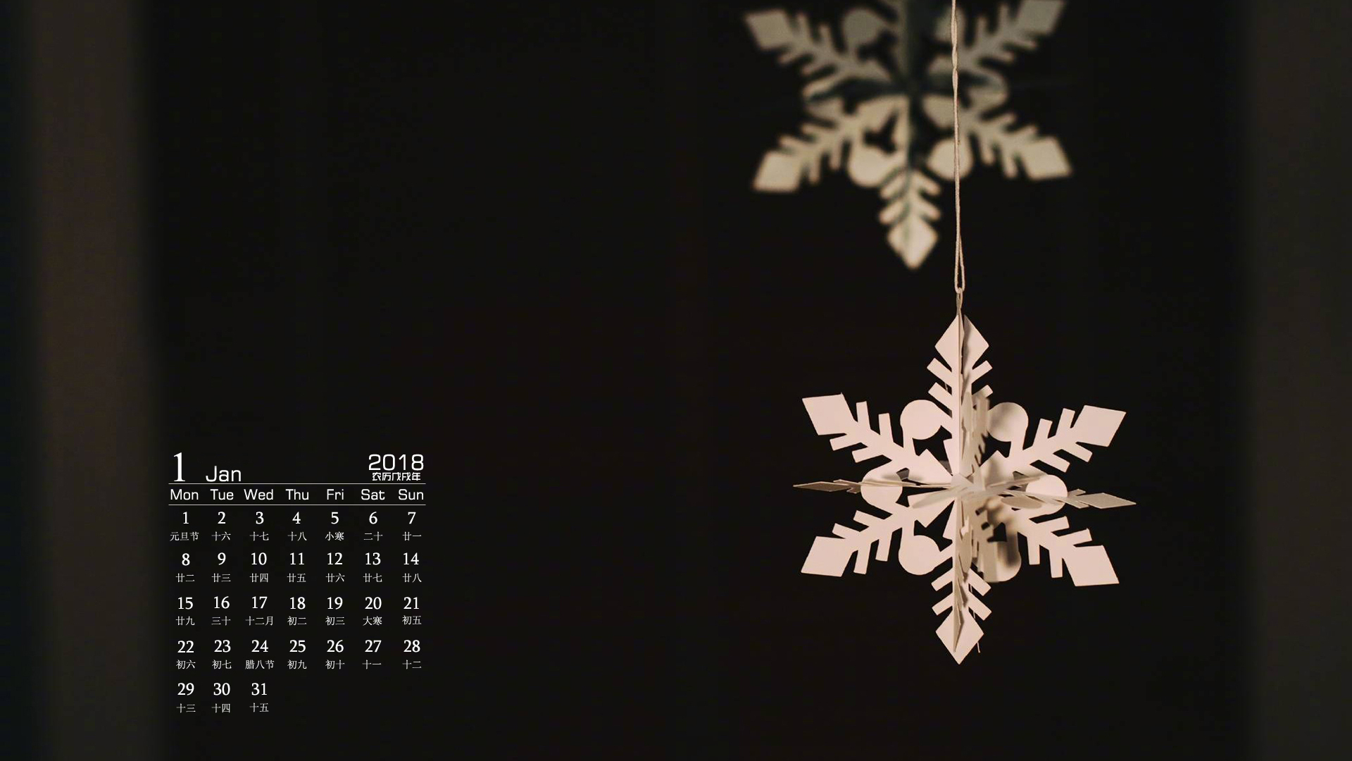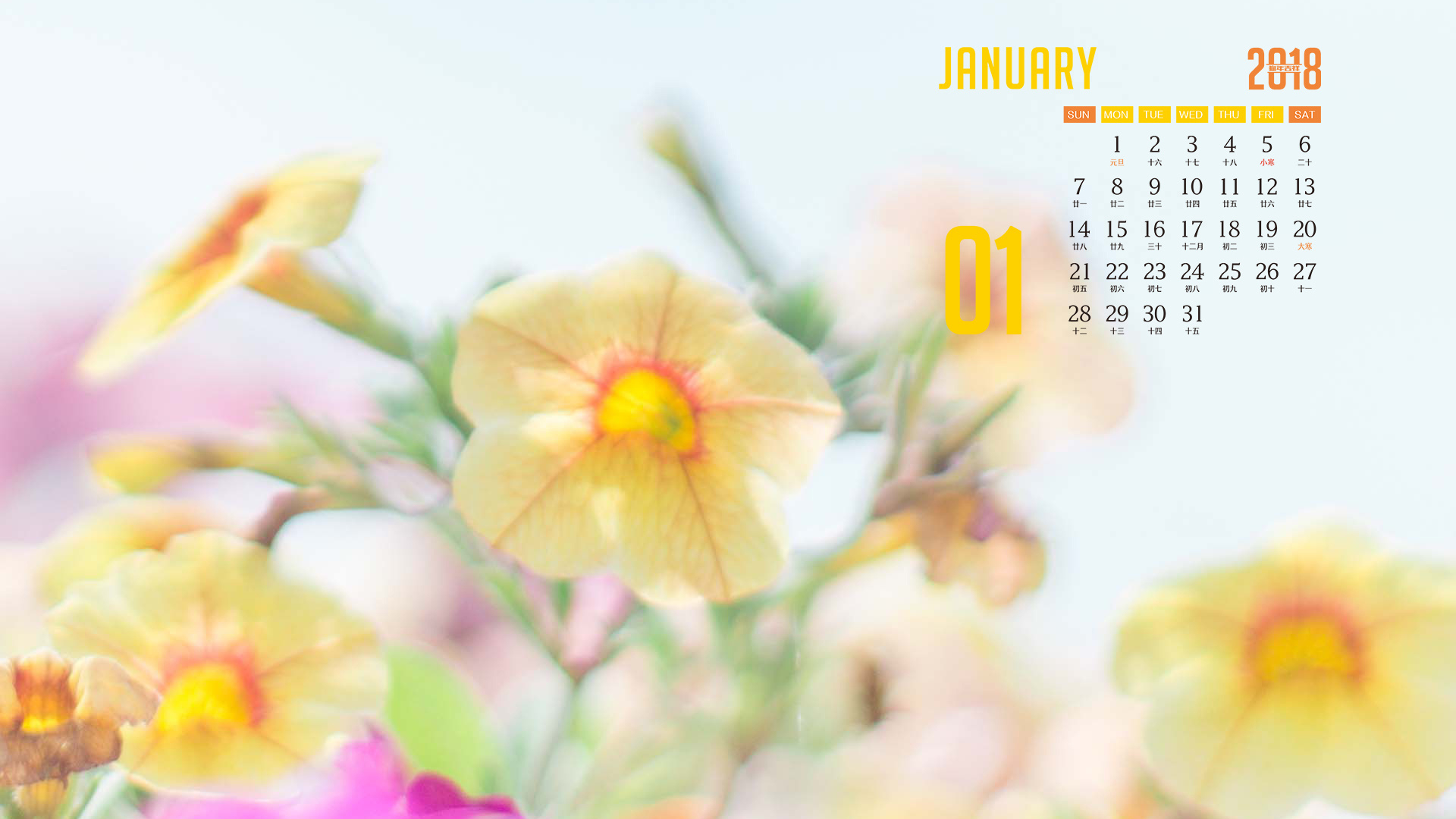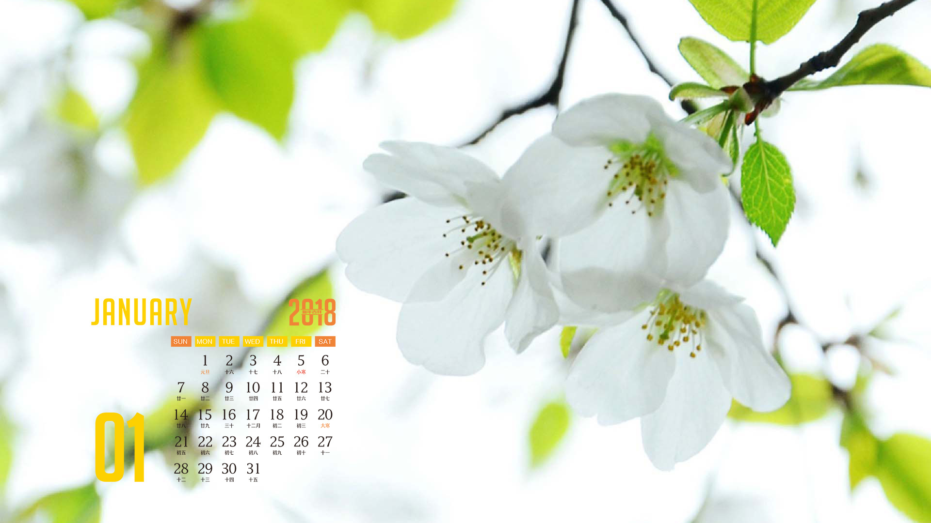 月历 2018年1月