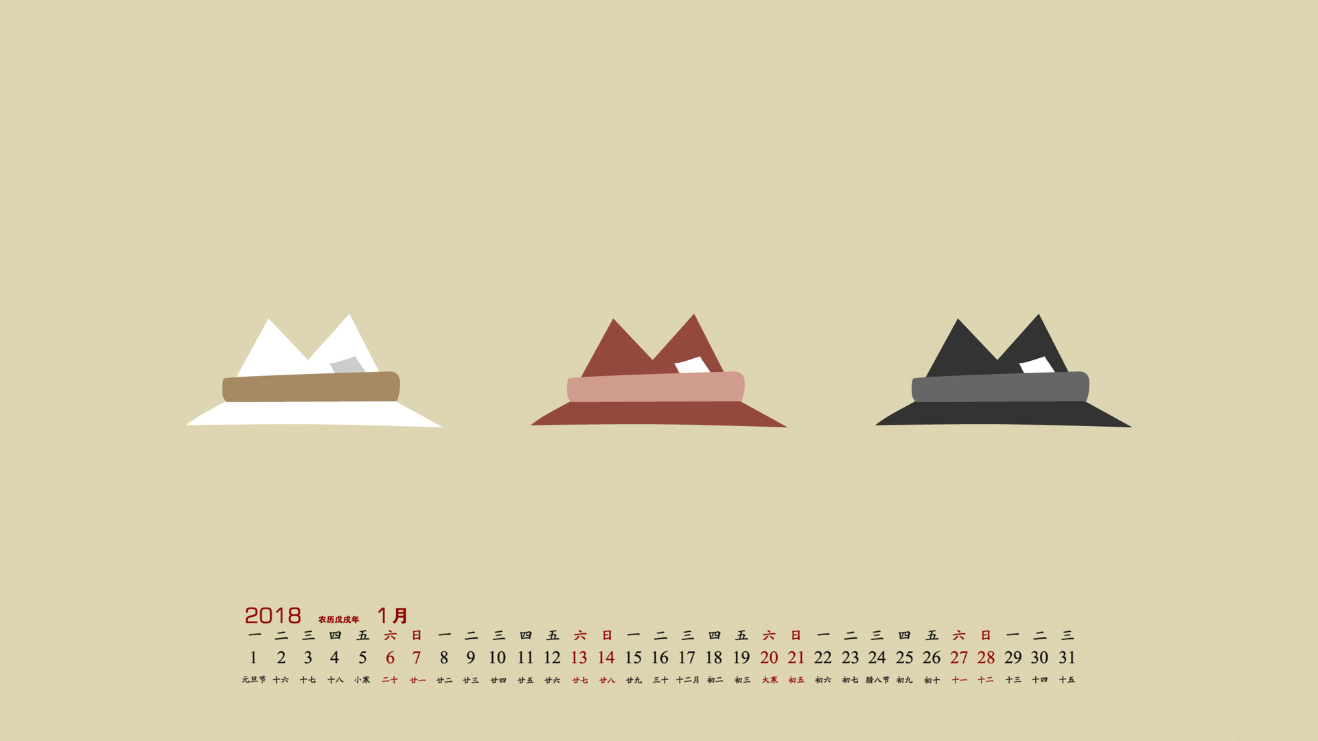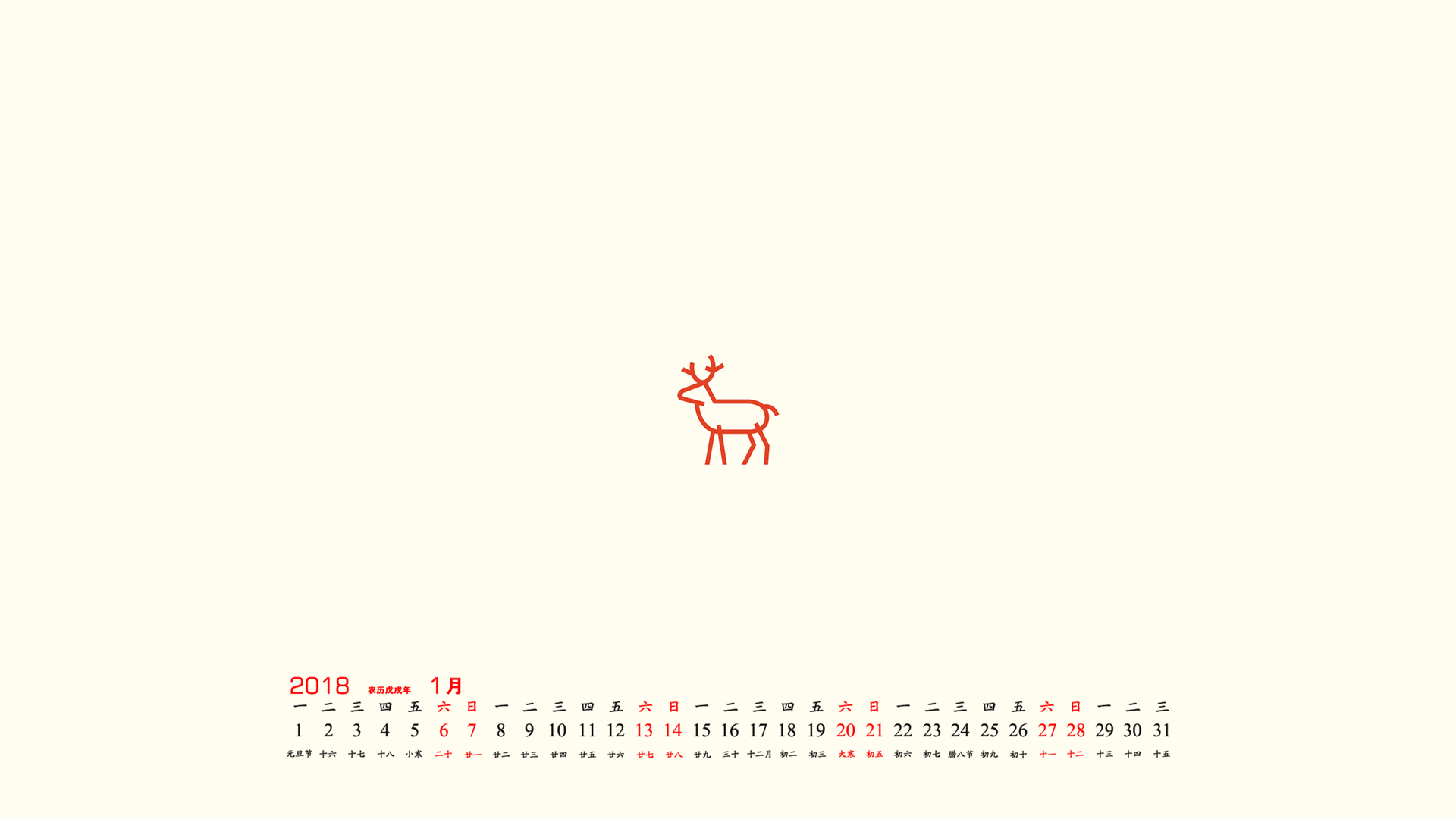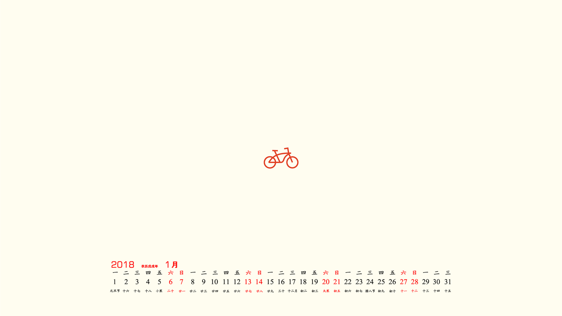 月历 2018年1月