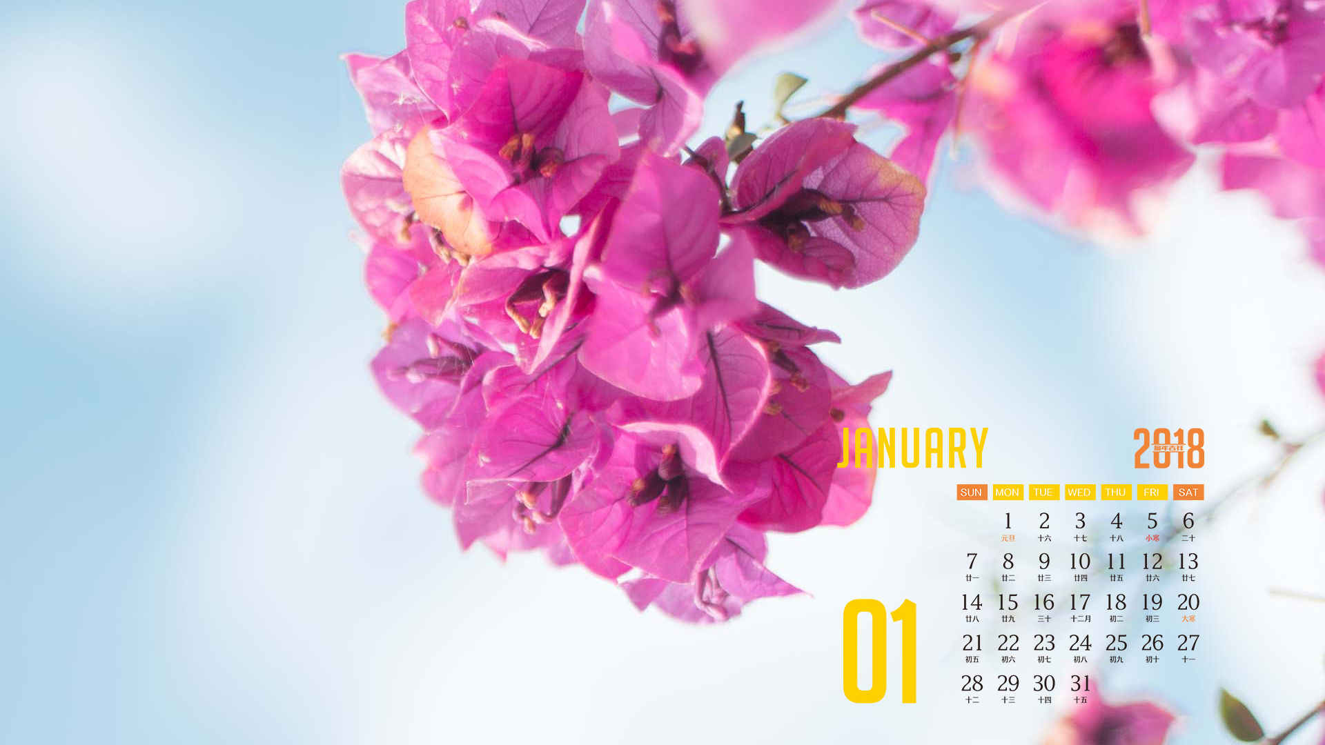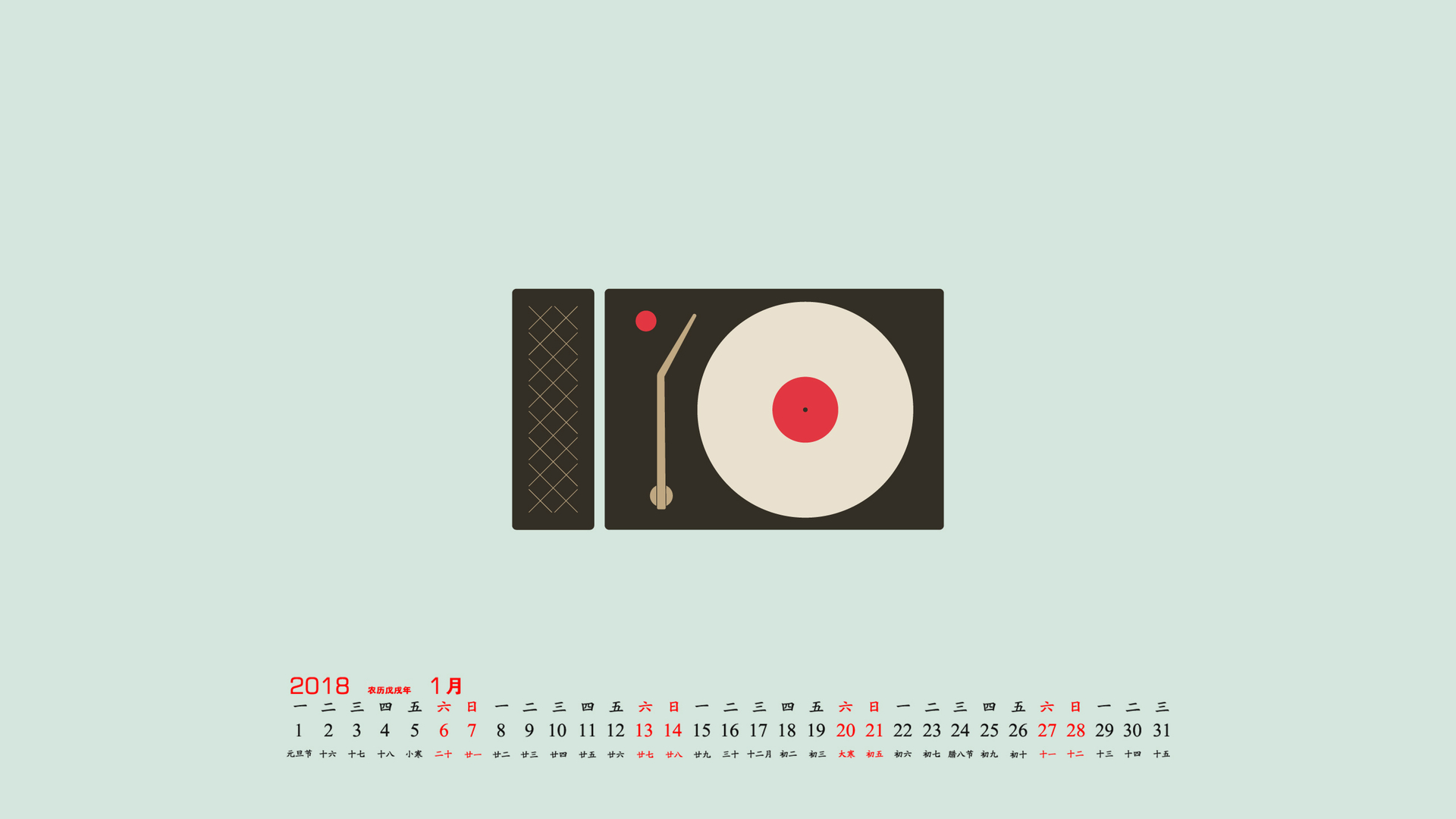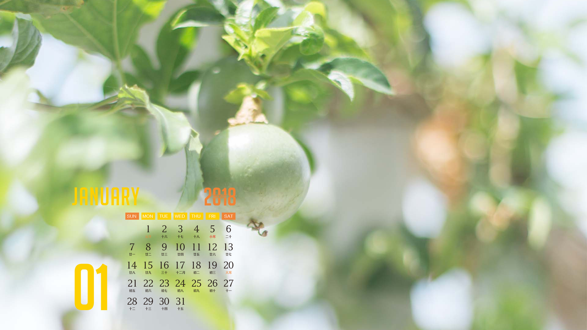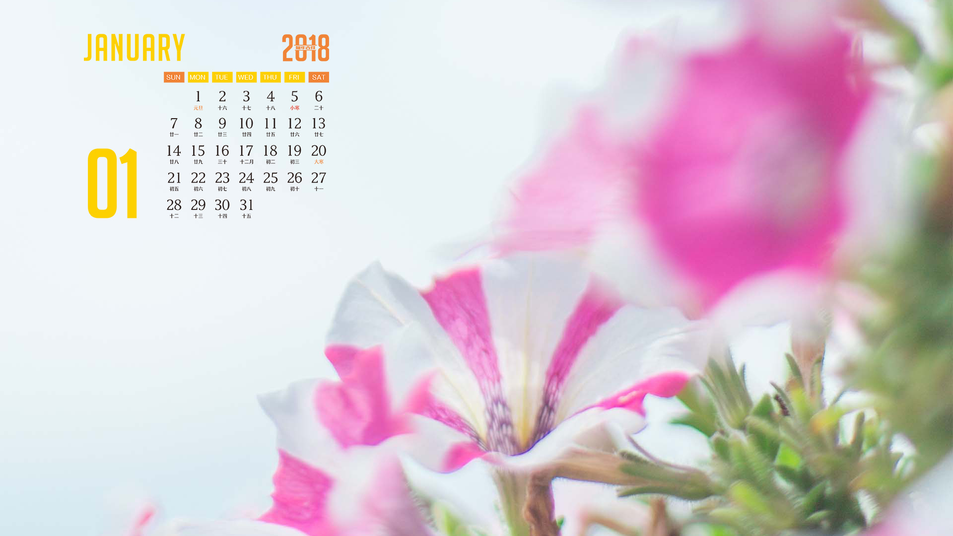 月历 2018年1月