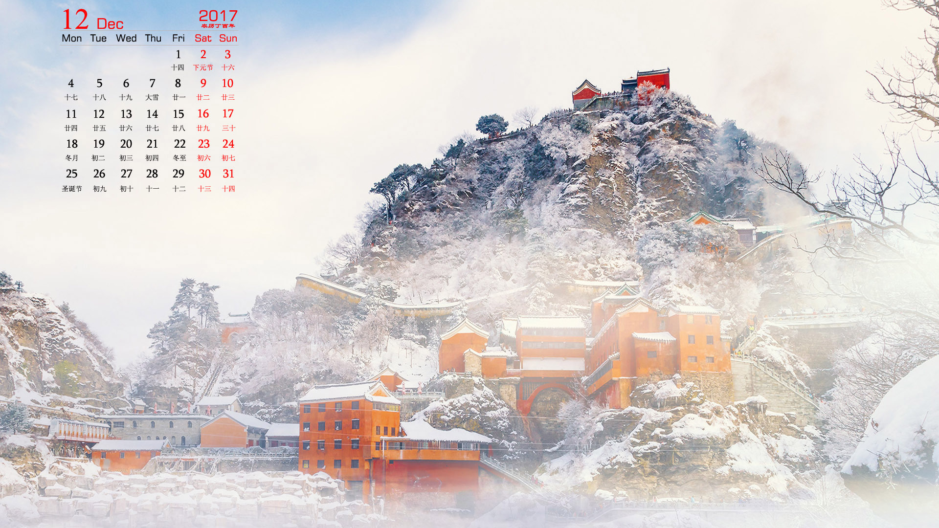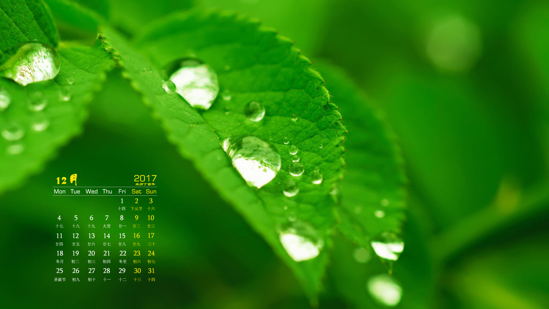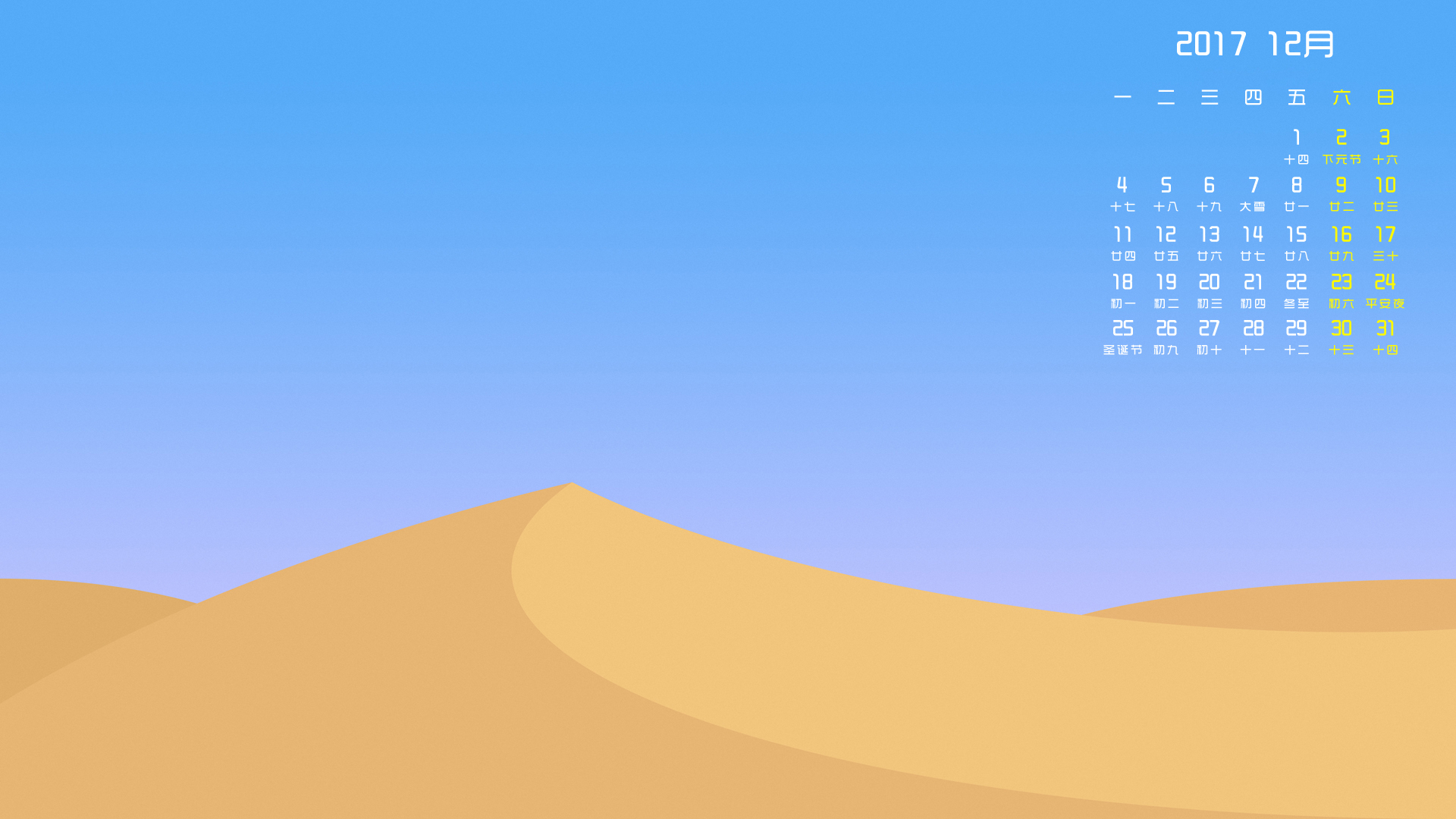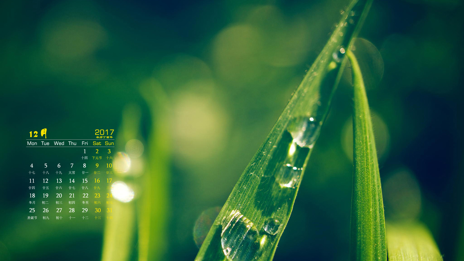月历 2017年12月