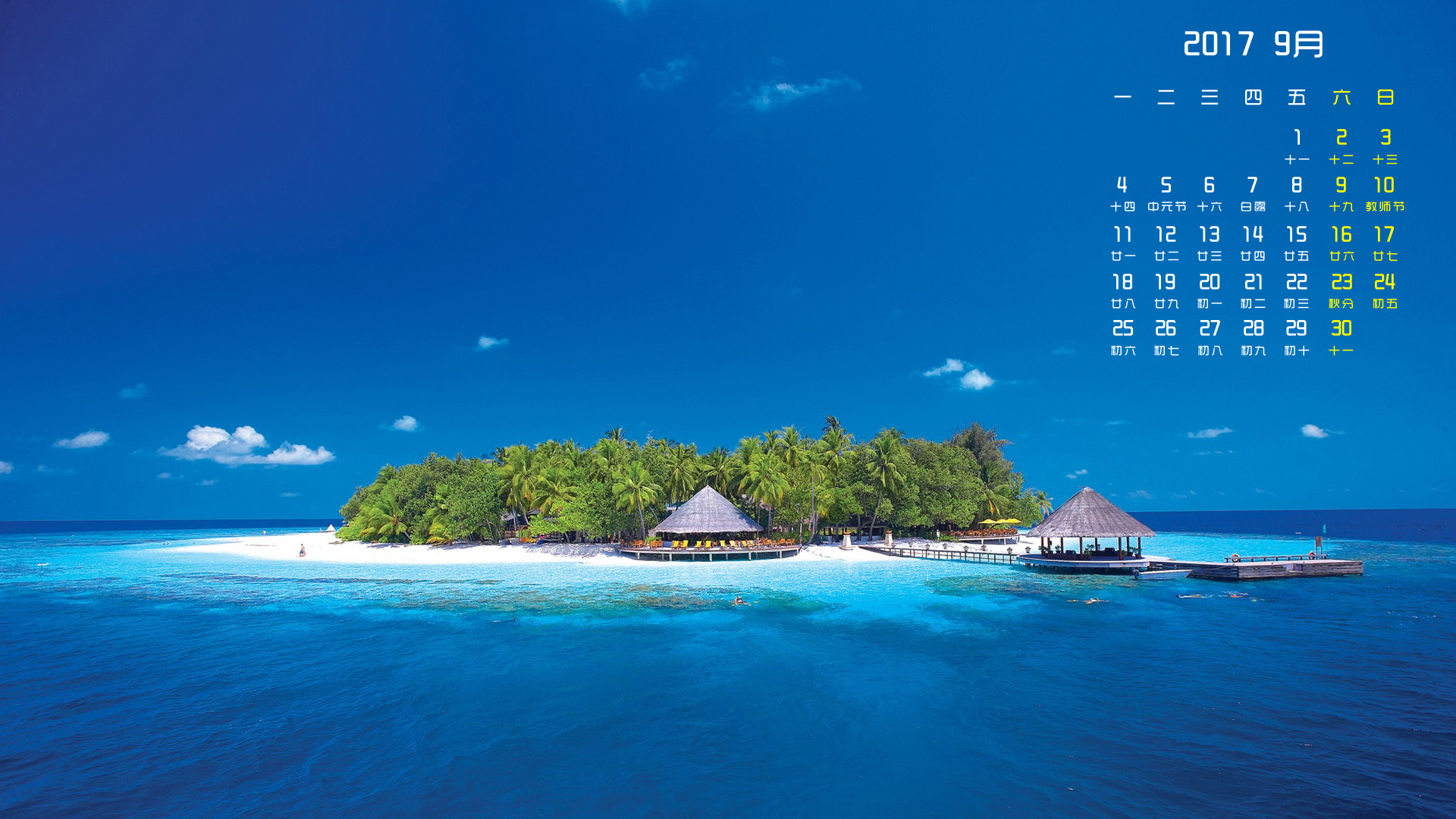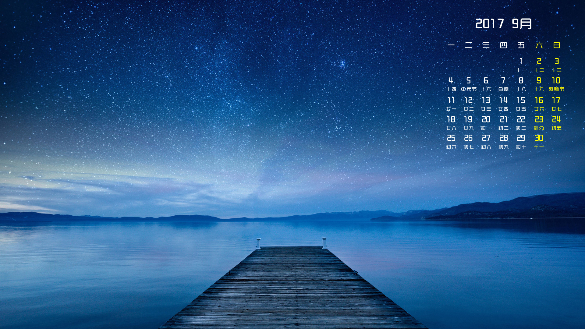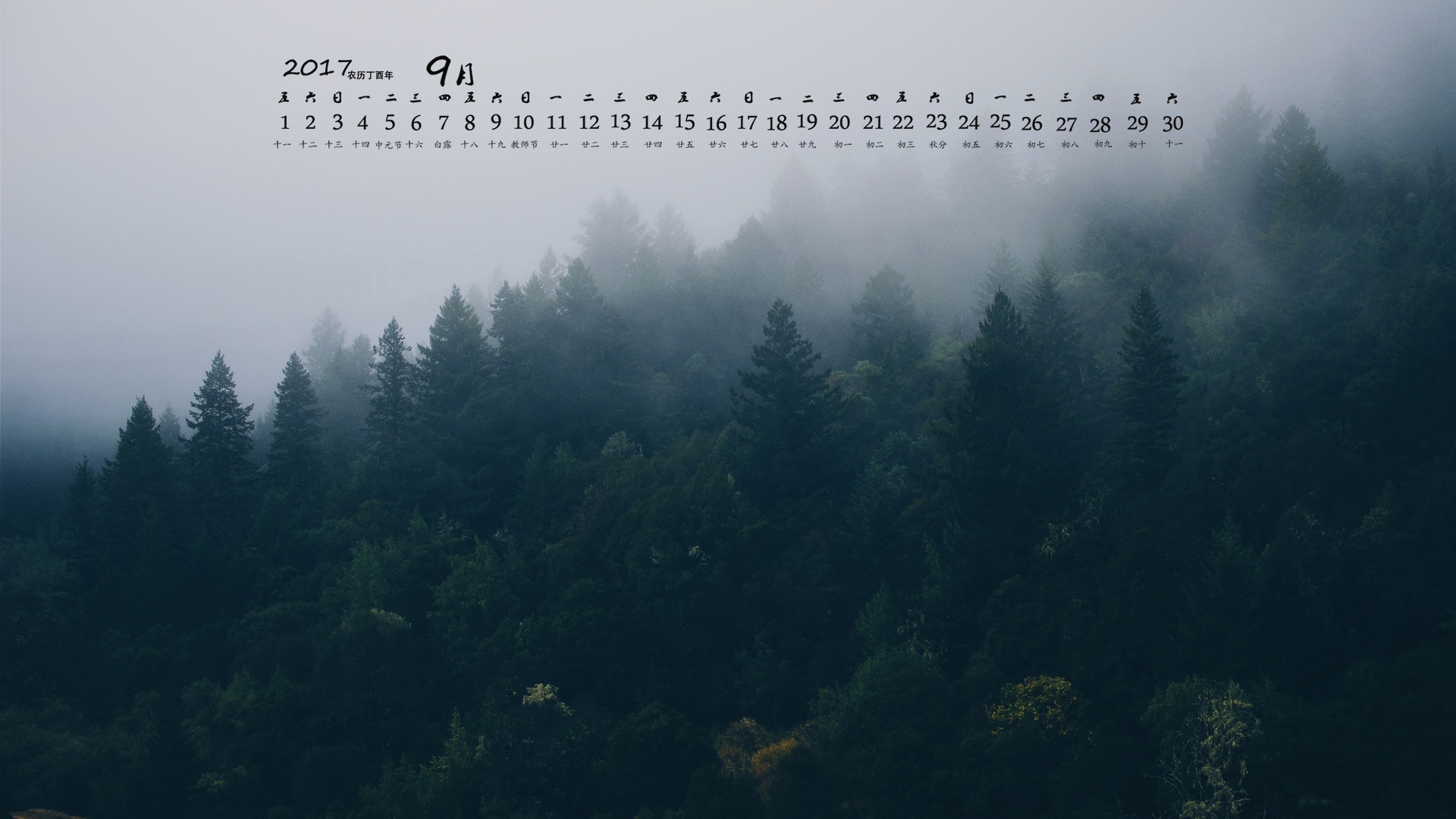 月历 2017年9月