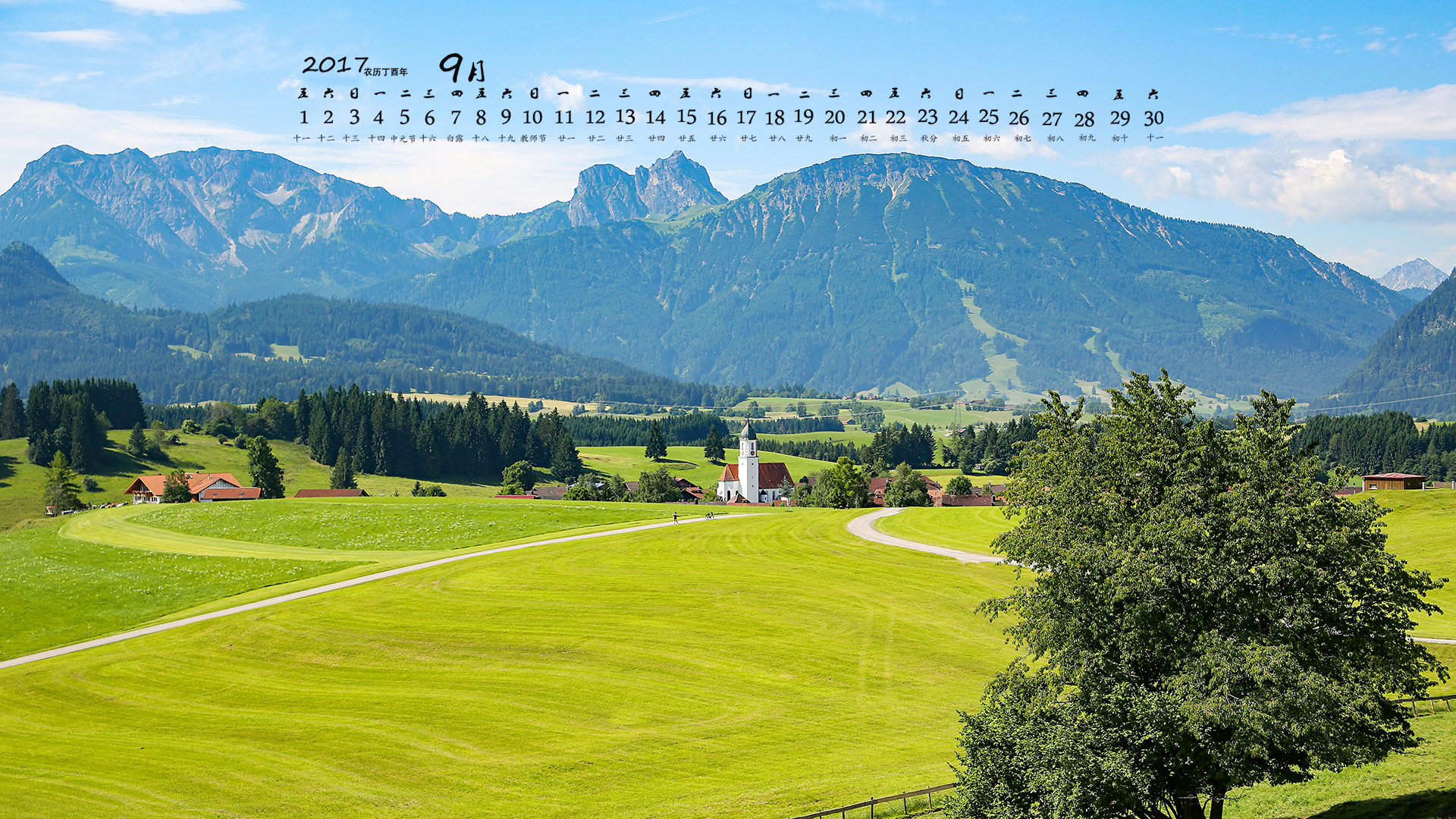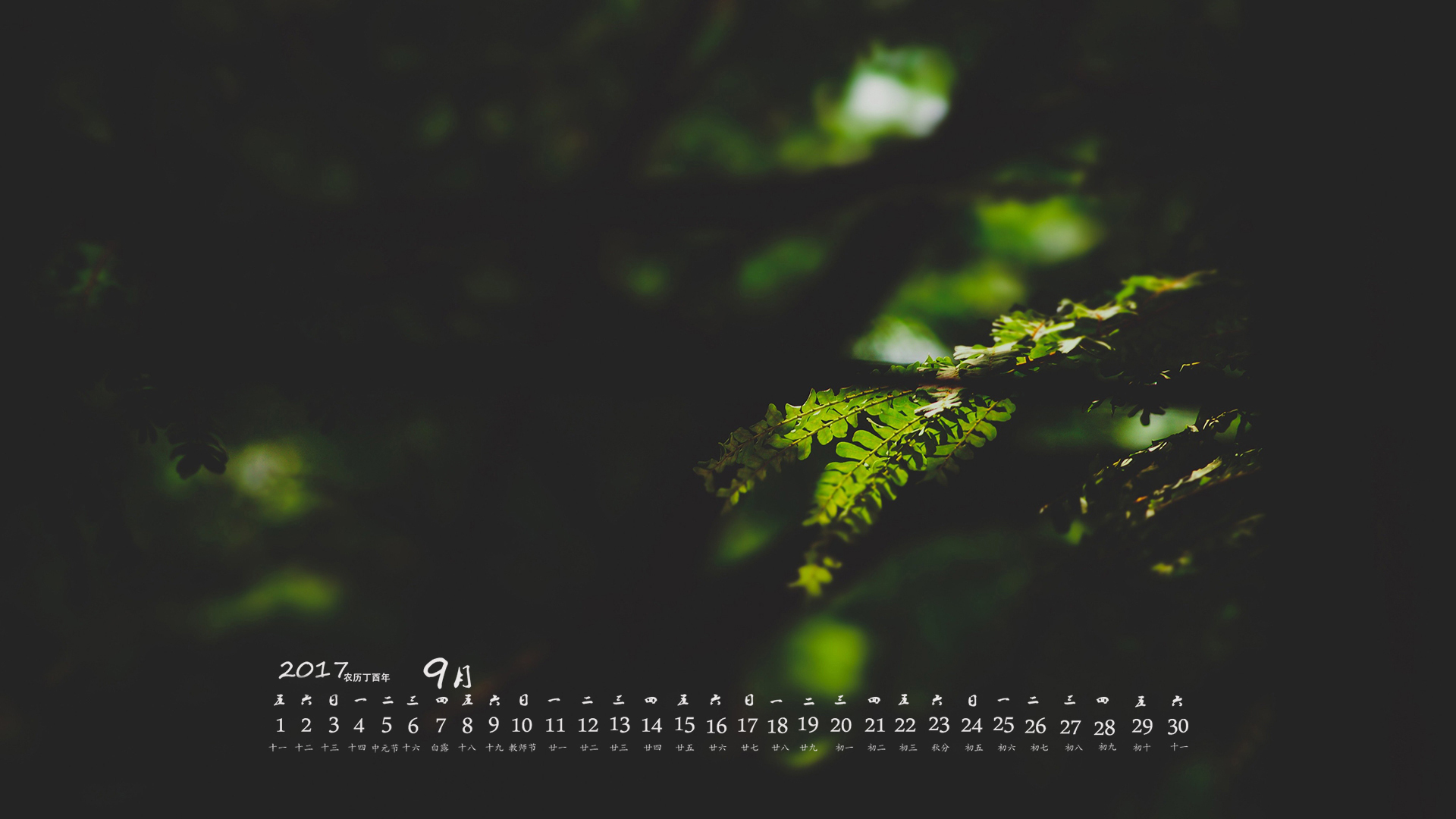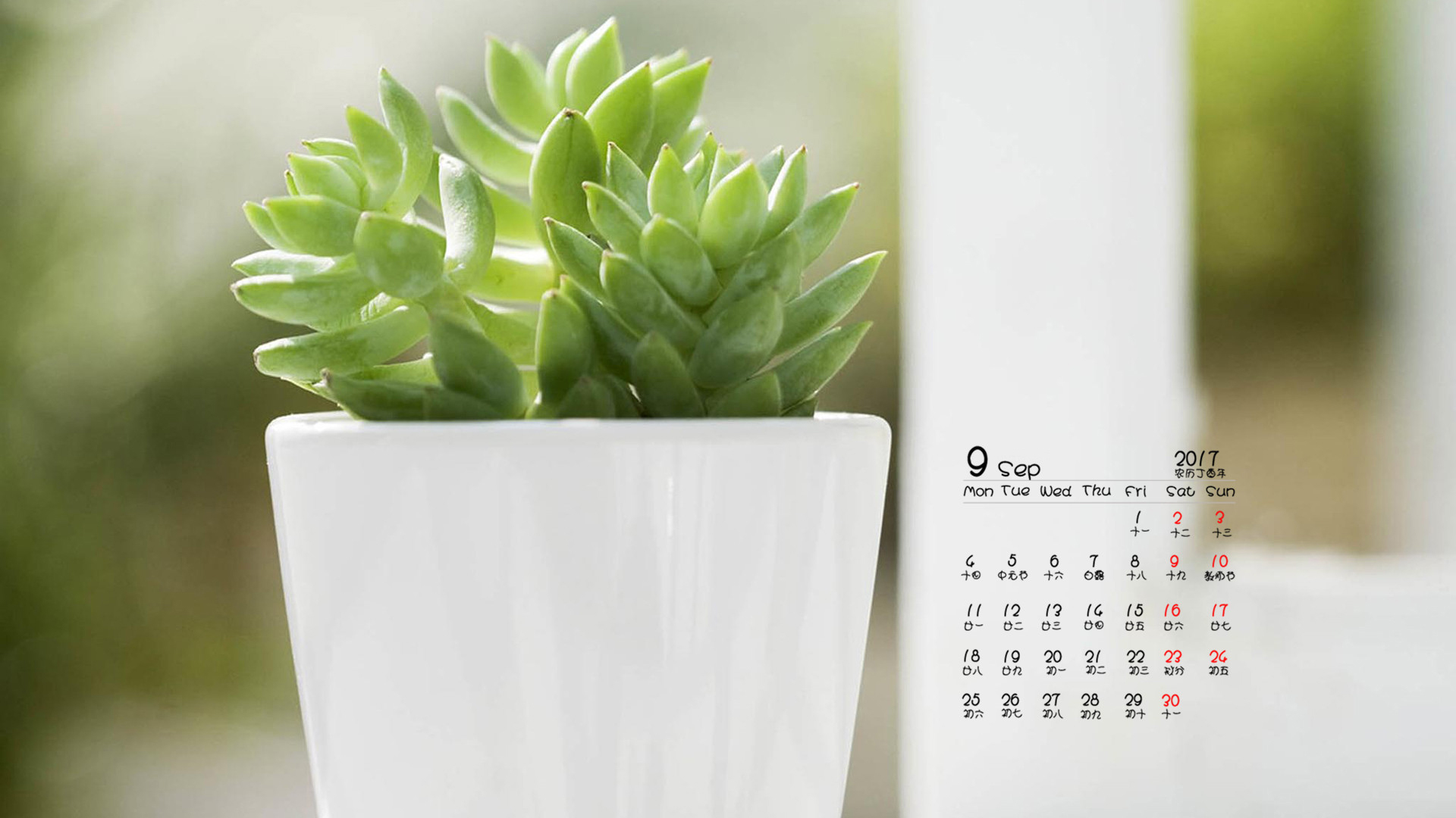 月历 2017年9月