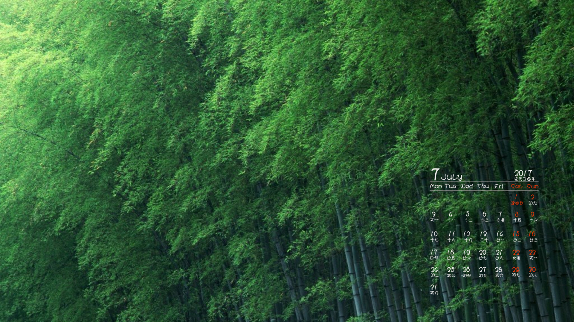 月历 2017年7月