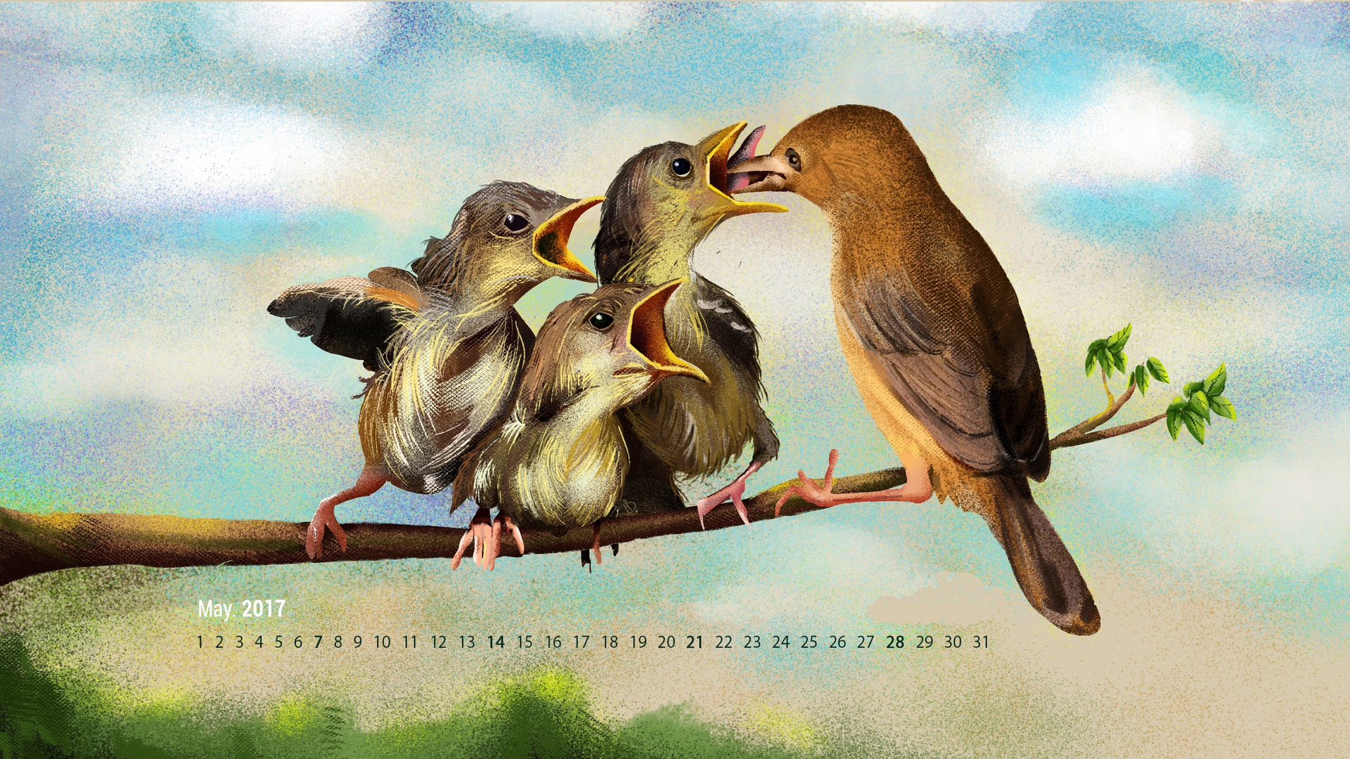 2017年5月 手绘 麻雀 小鸟