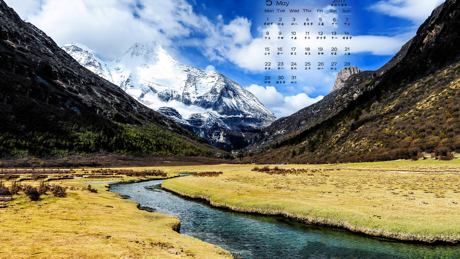 2017年5月 雪山 草地 河流