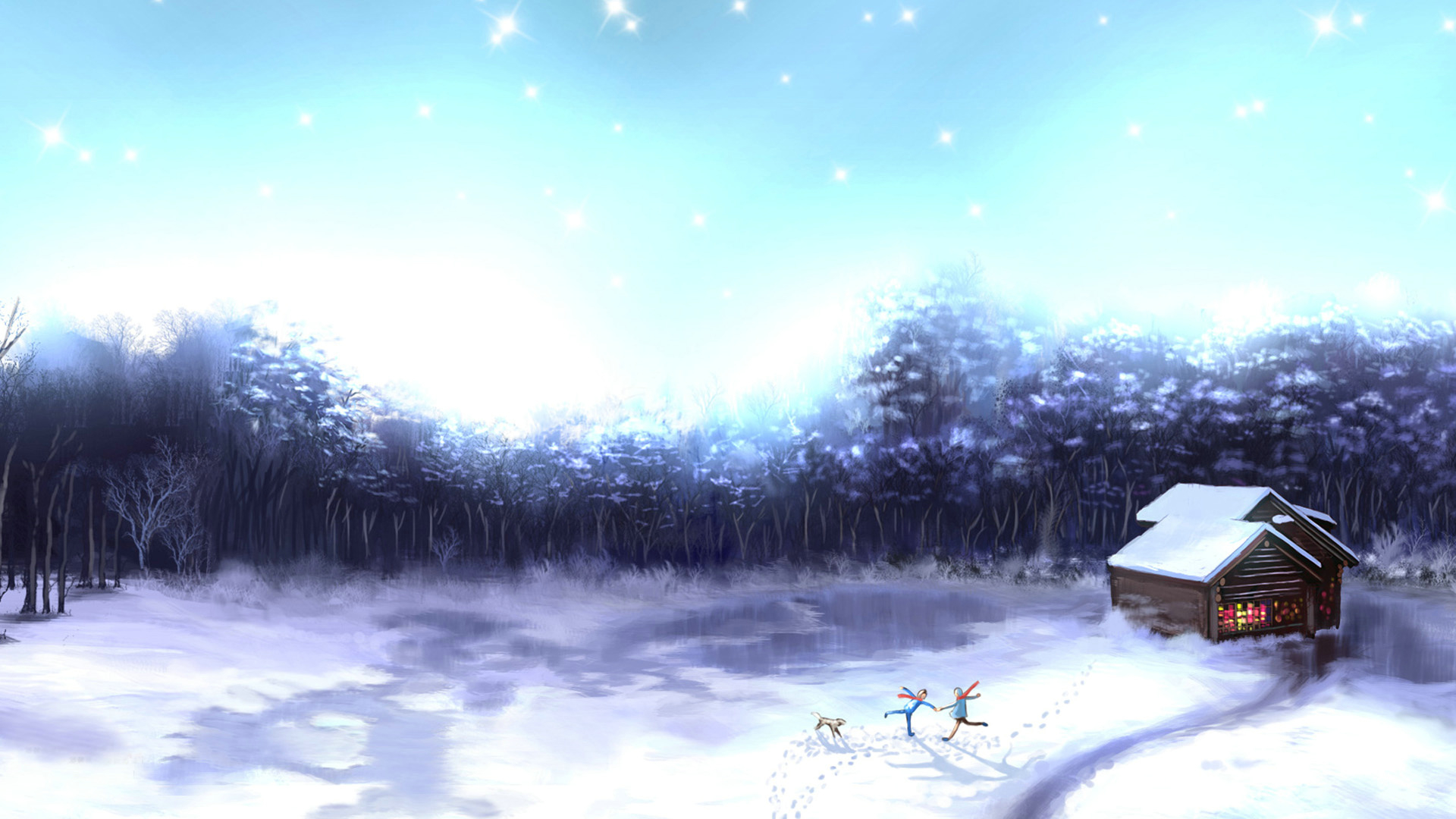 爱情美图 浪漫手绘 雪地的爱恋 情人 情侣