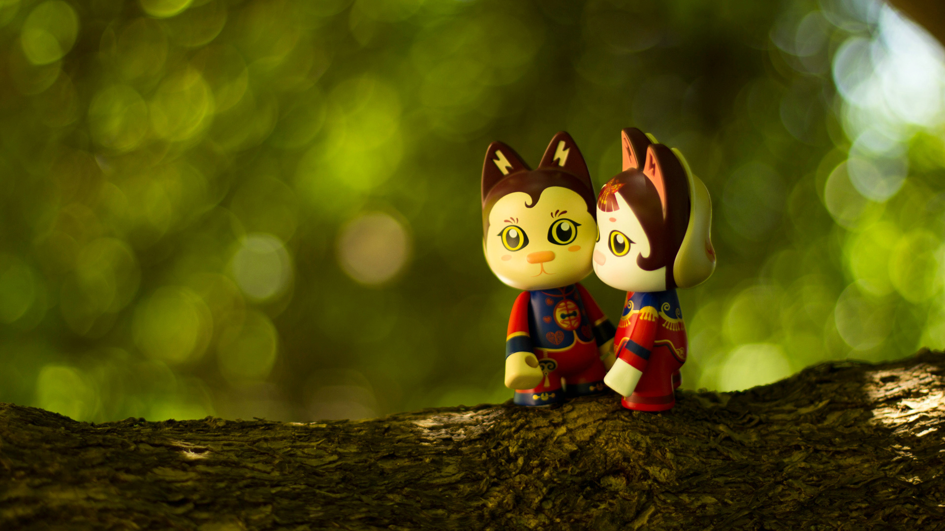 爱情美图 浪漫手绘 依偎 猫 在一起