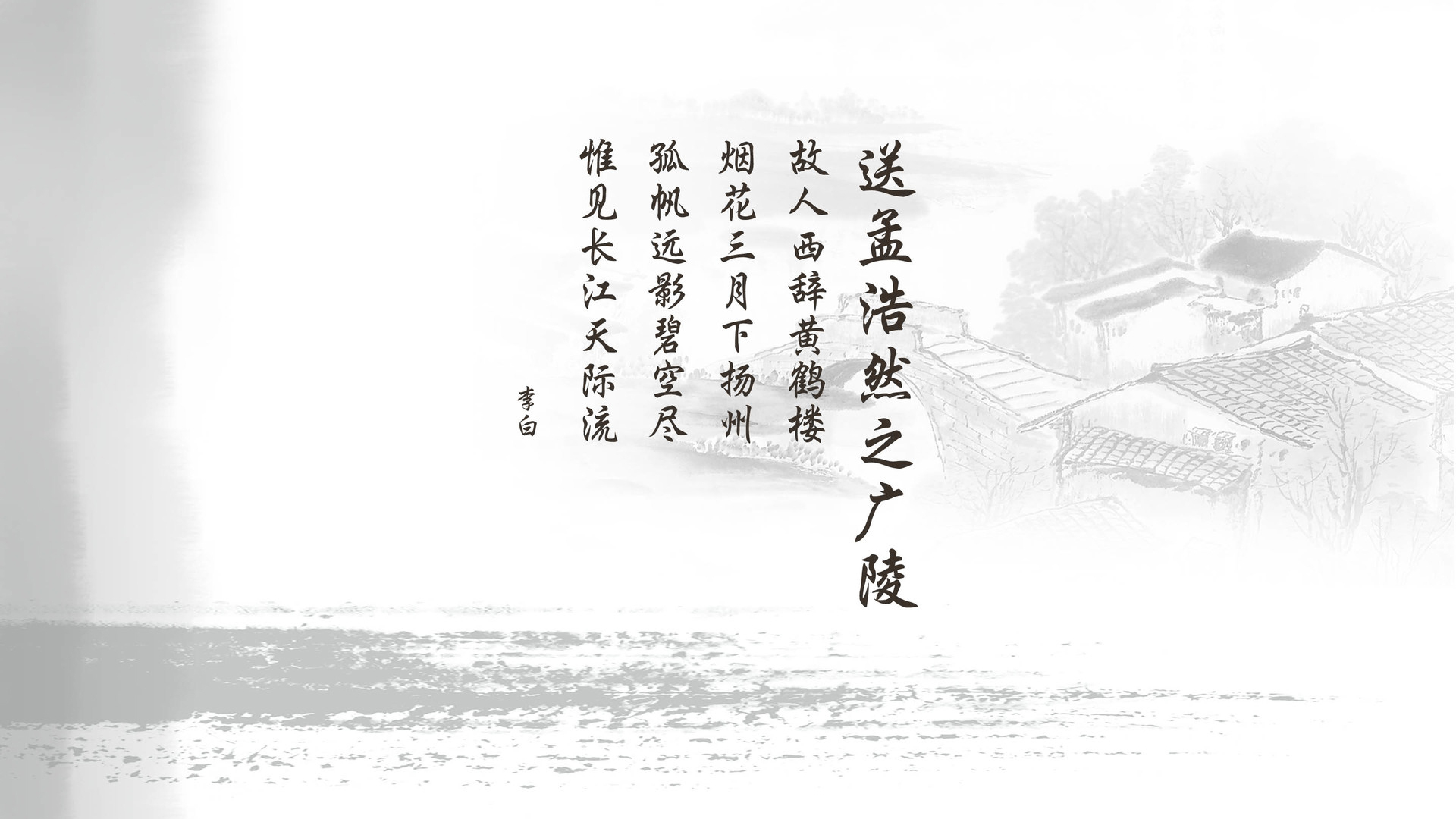 文字 唐诗 诗词 李白 送孟浩然之广陵 中国风