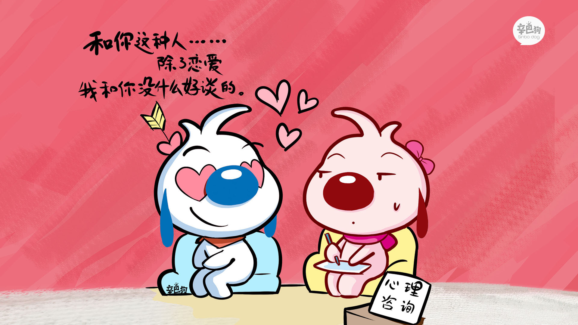 文字 辛巴狗 红色 卡通 搞笑 爱情