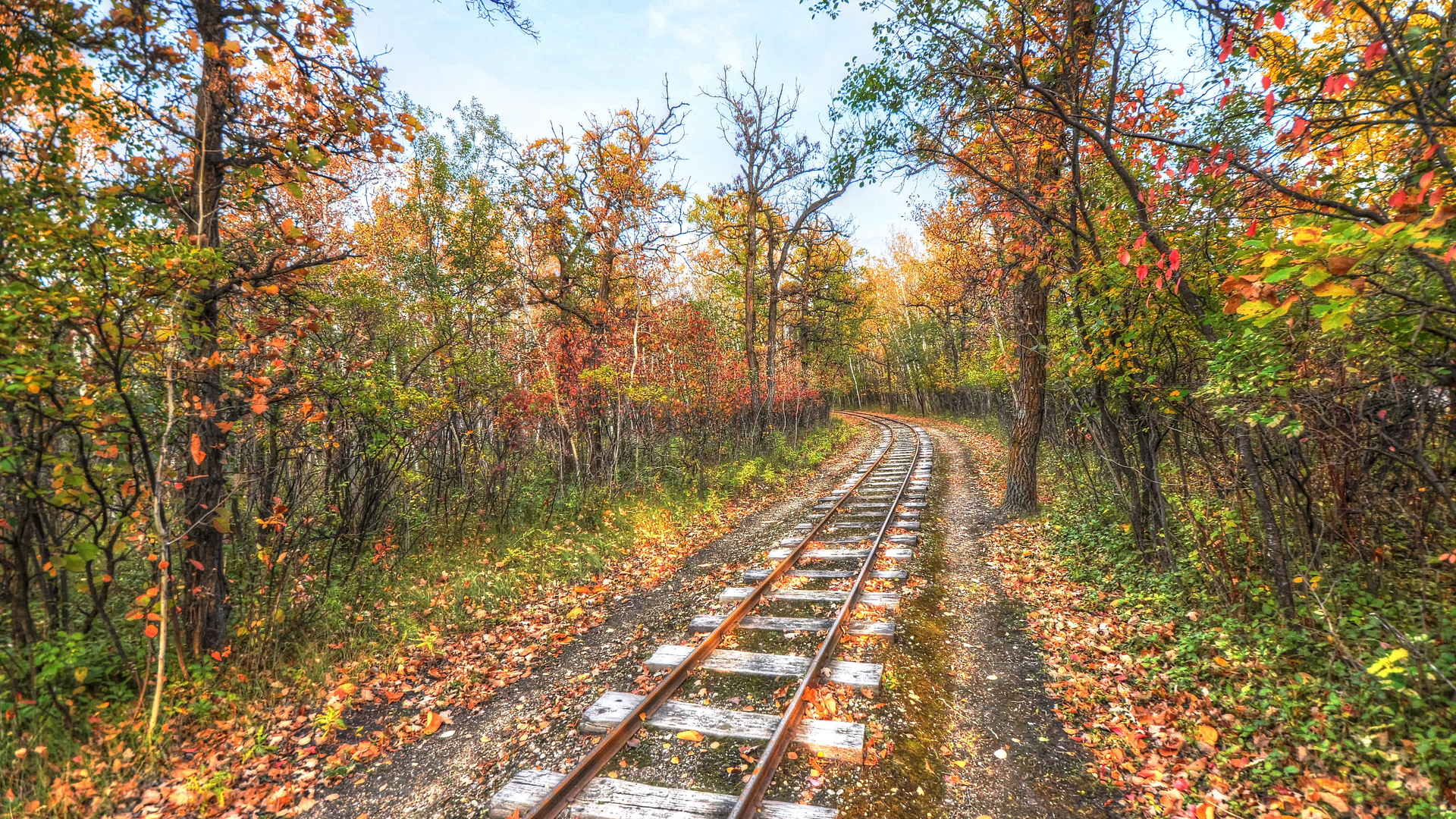 风景 秋天 落叶 铁路