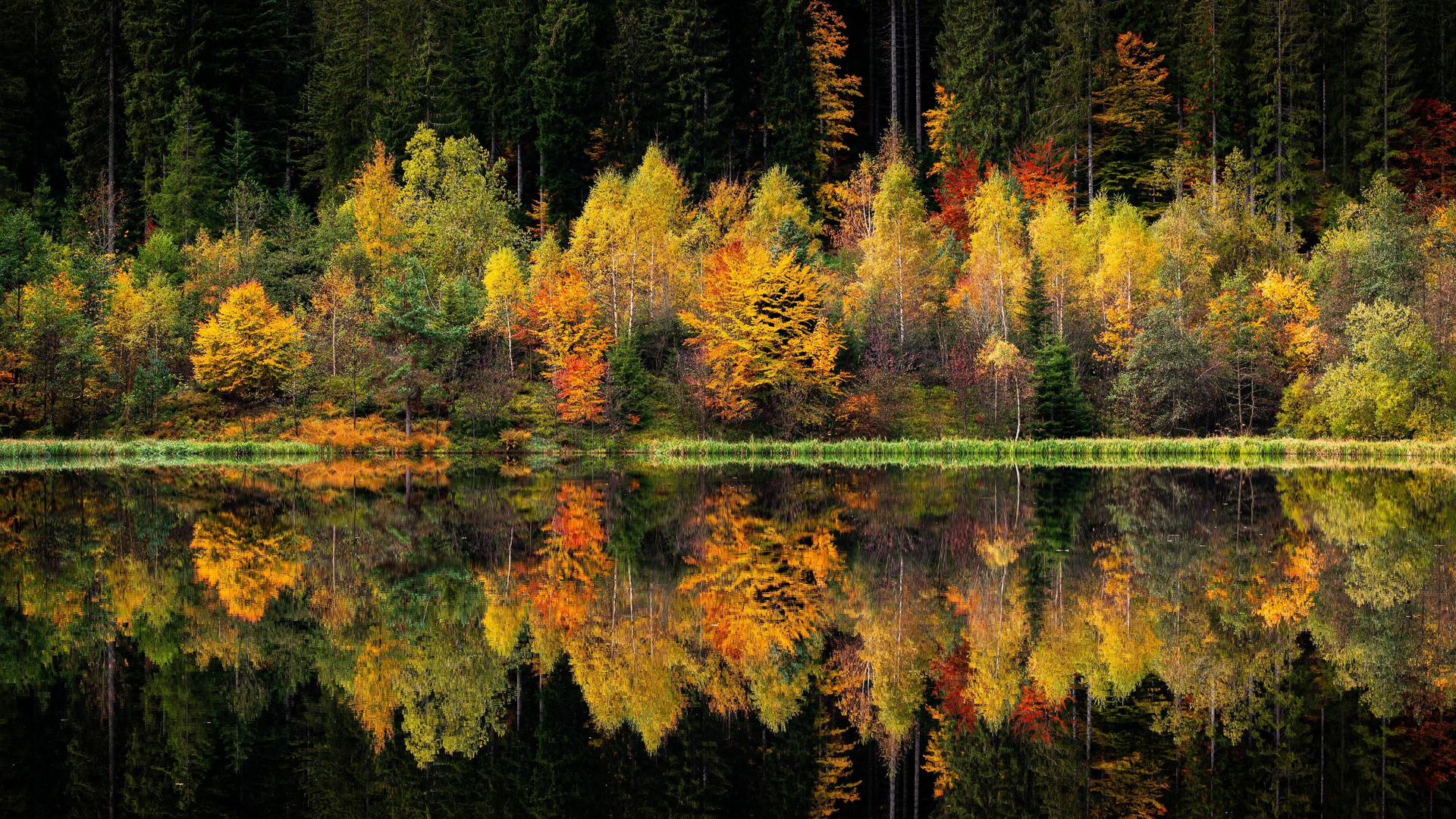 秋意正浓 深秋 树林 倒影 五彩林