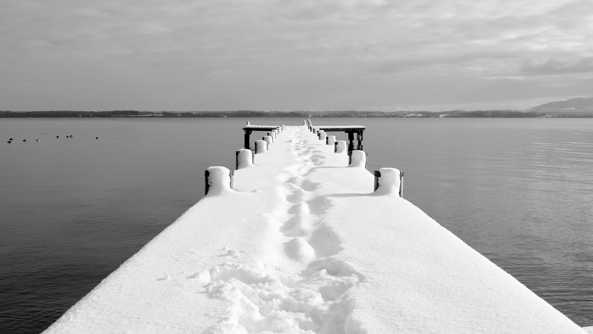 湖泊中的雪景