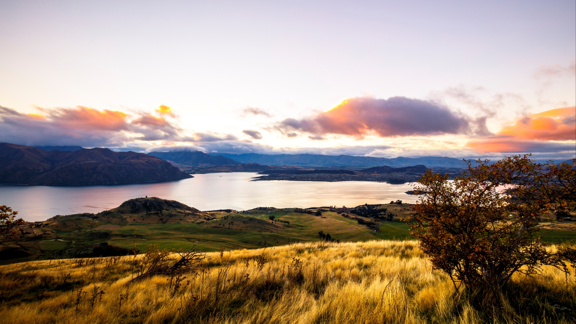 4K 风景 湖泊 草地 夕阳 山川 湖光山色