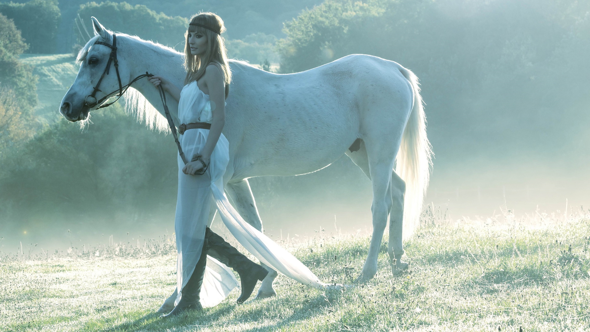 美女 白马 清新阳光 唯美
