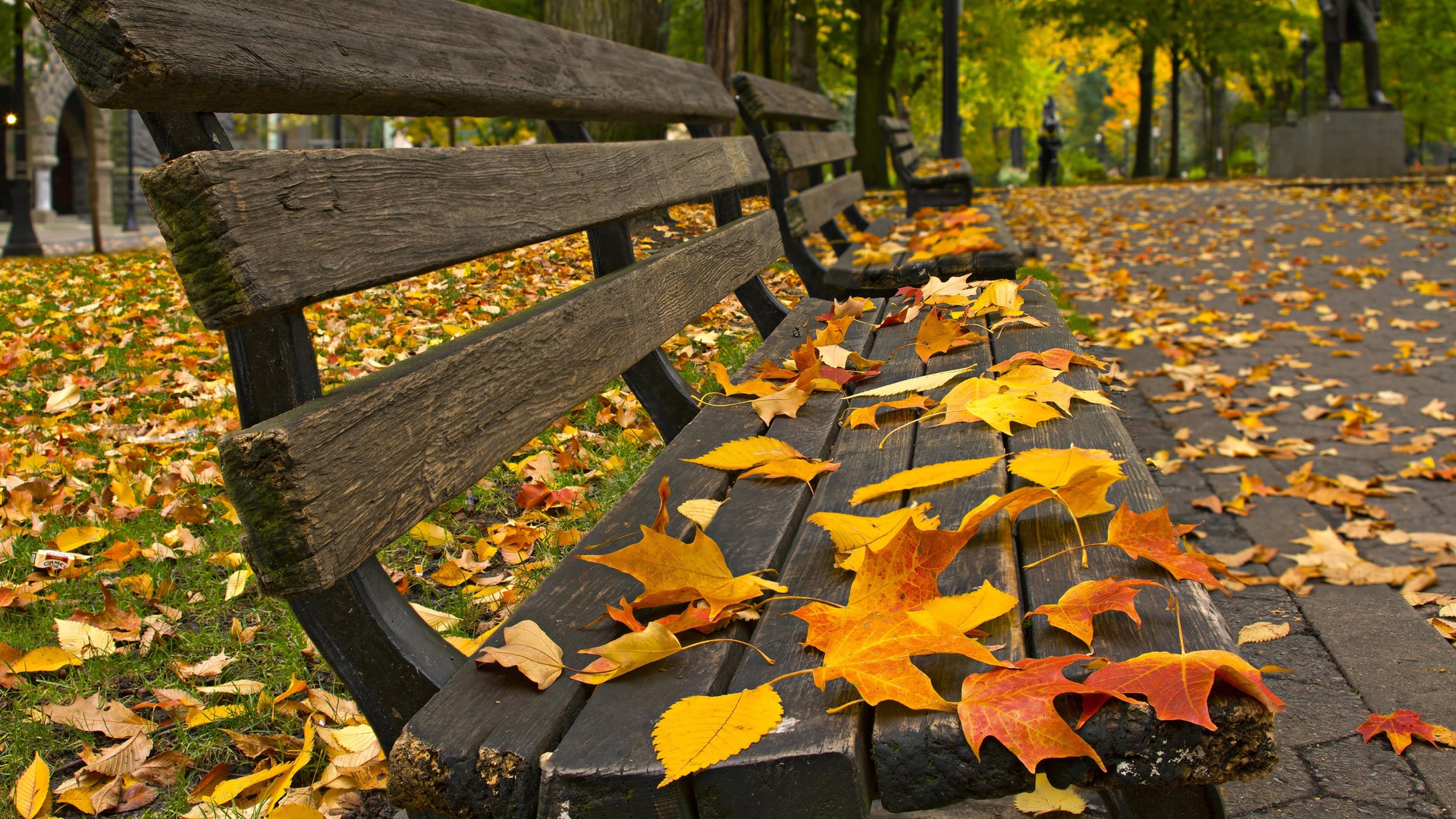 秋天 落叶 长椅