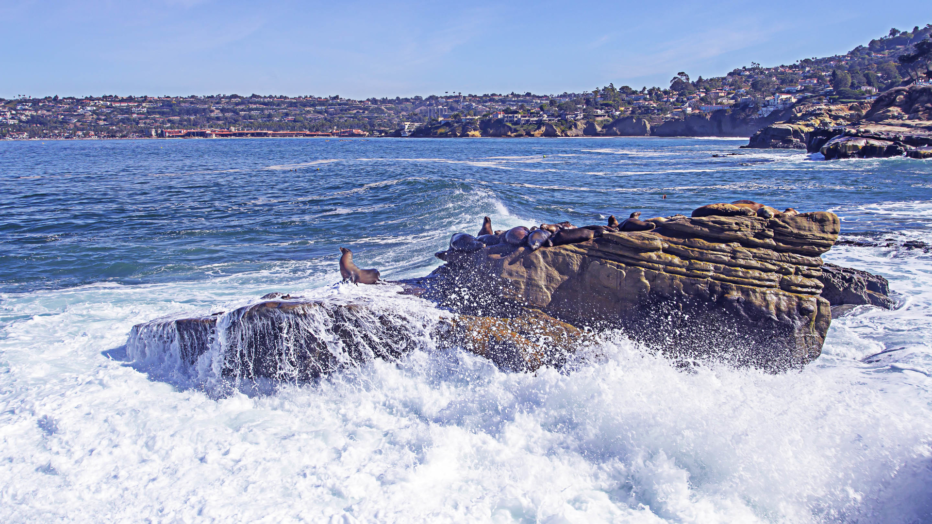 岩石上的海豹 浪花