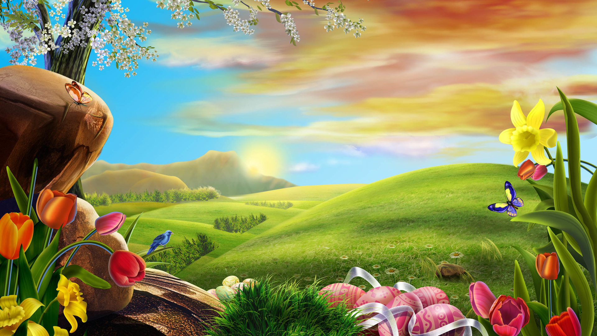 动画 草地 小鸟