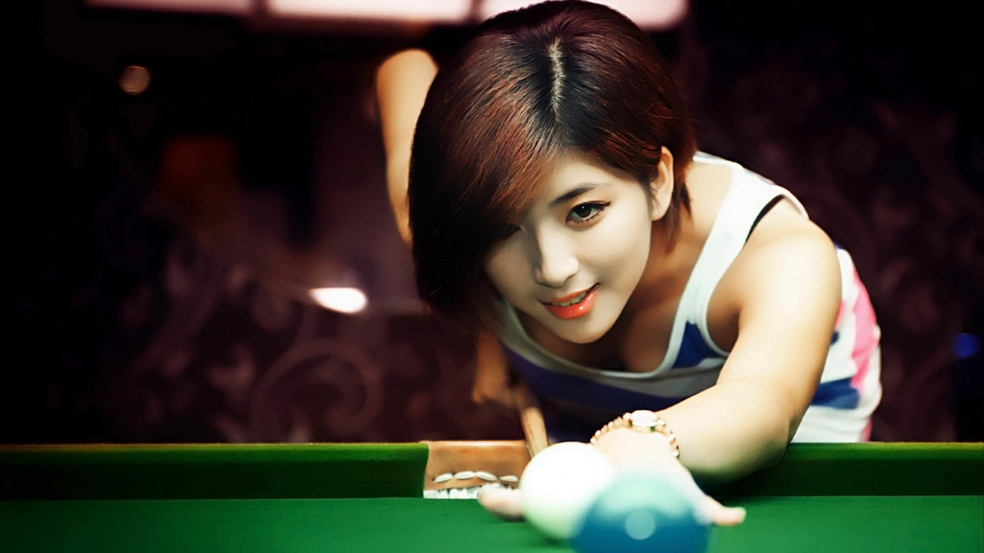 美女 台球