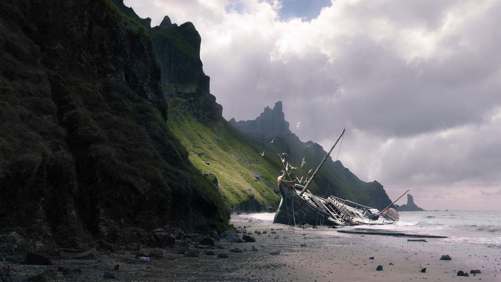 沉船 搁浅 沙滩 军舰