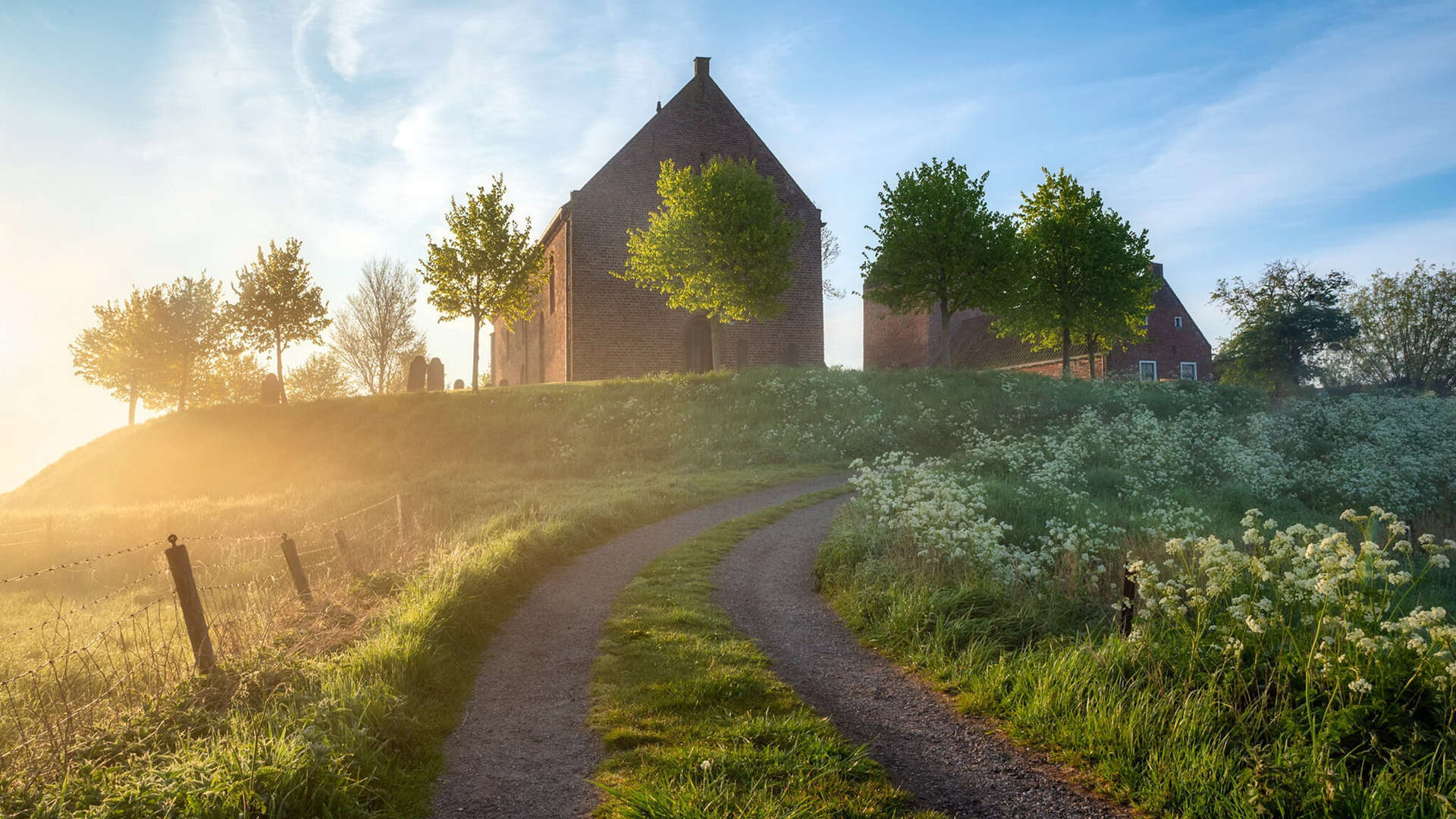 村庄 夕阳 小路