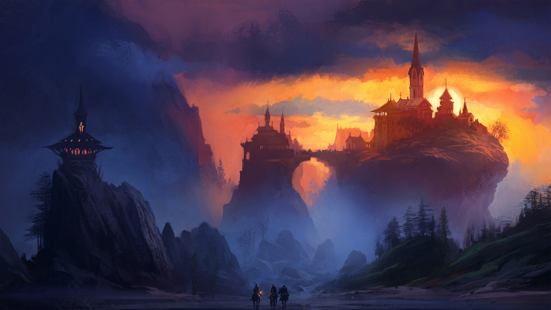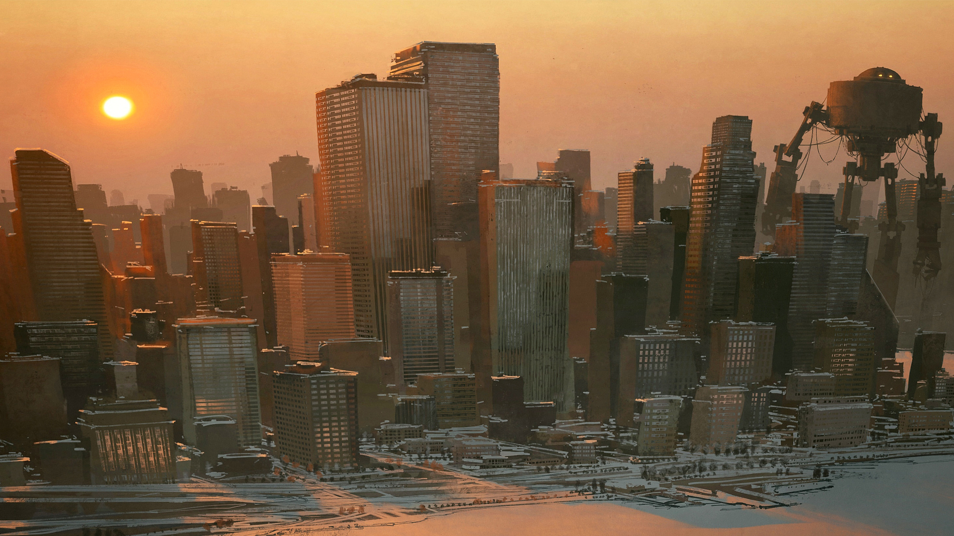 未来派城市 日落 科幻 概念艺术