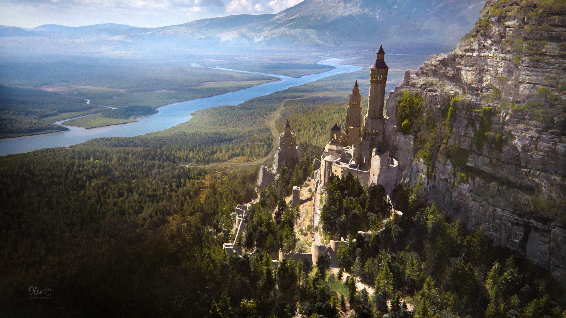 靠山的城堡 树林 古堡 一望无际