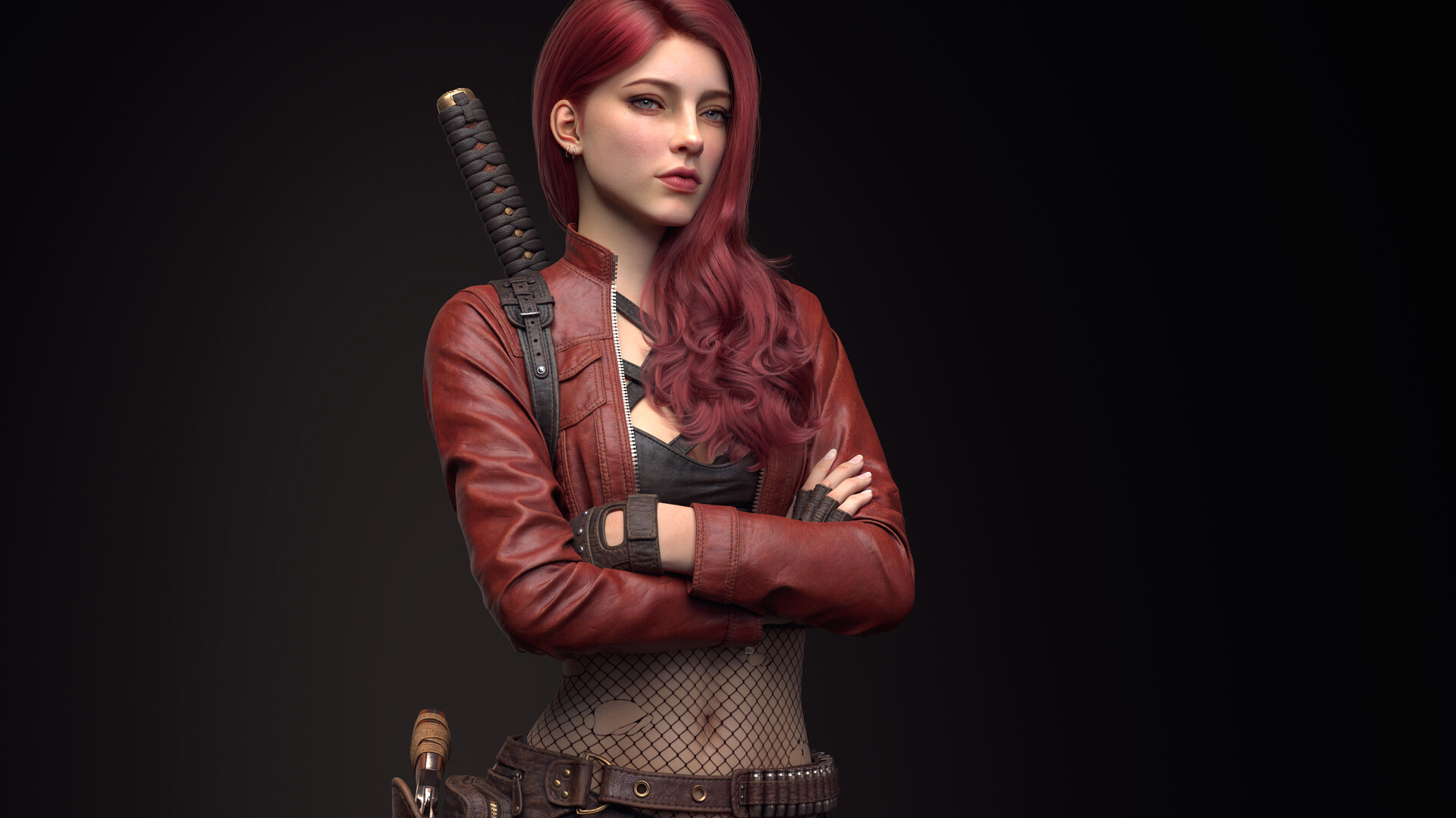 长发 小皮衣 武士刀 酷姐姐