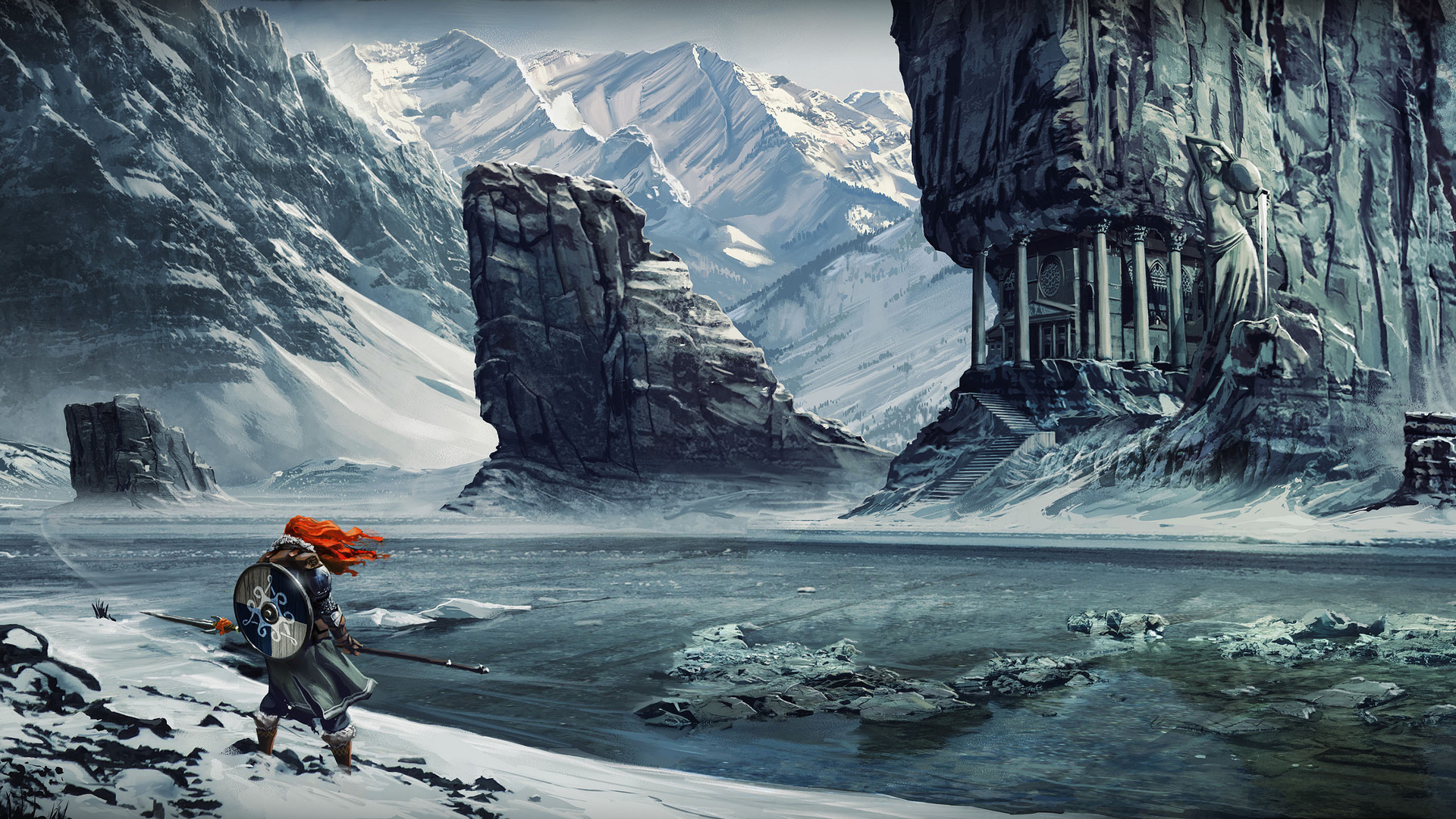 冰川 孤独的武士 盾牌 长枪