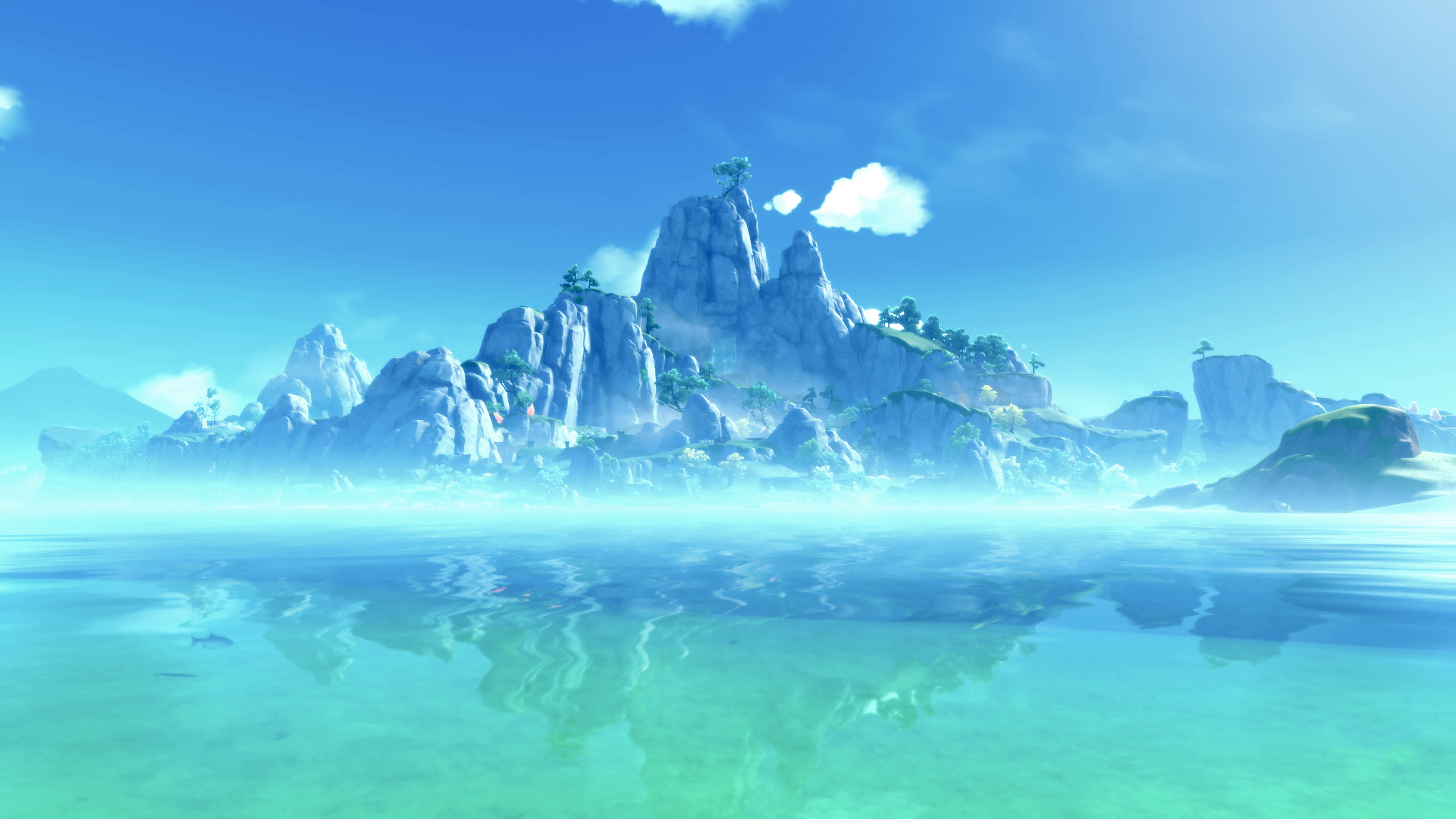 原神 冰山 湖面 雾 清澈 神秘