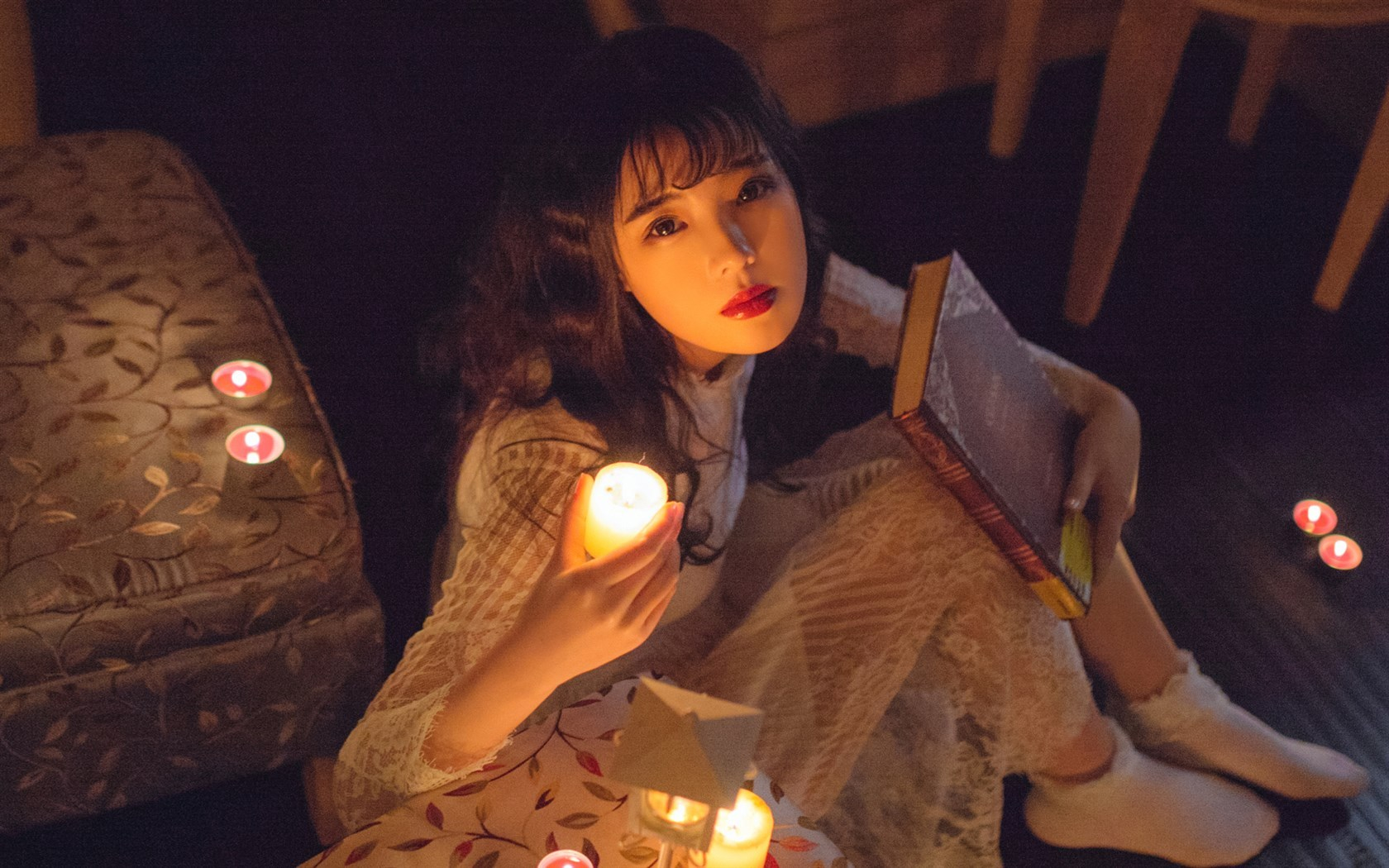 清纯 长裙 文艺 蜡烛