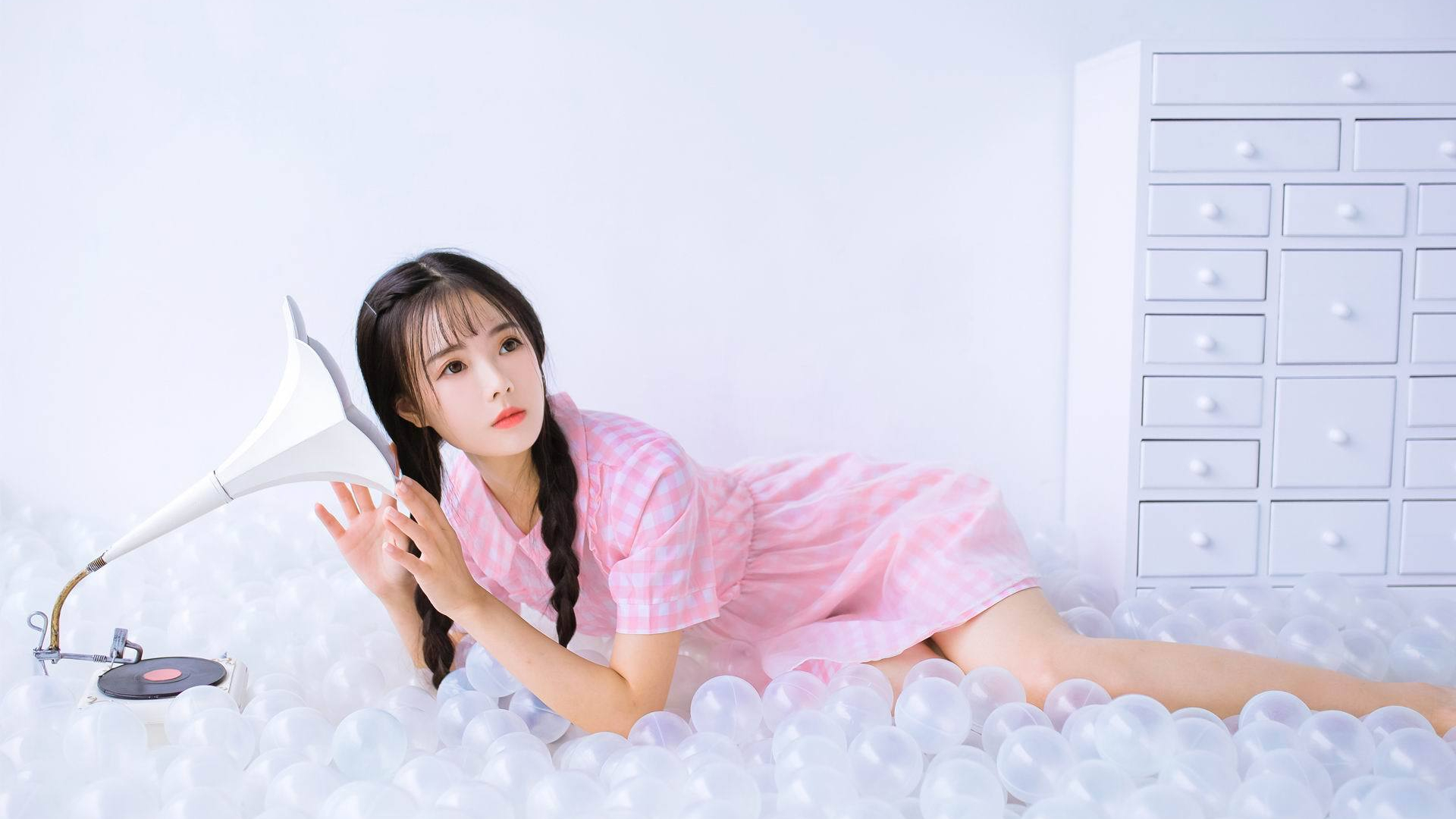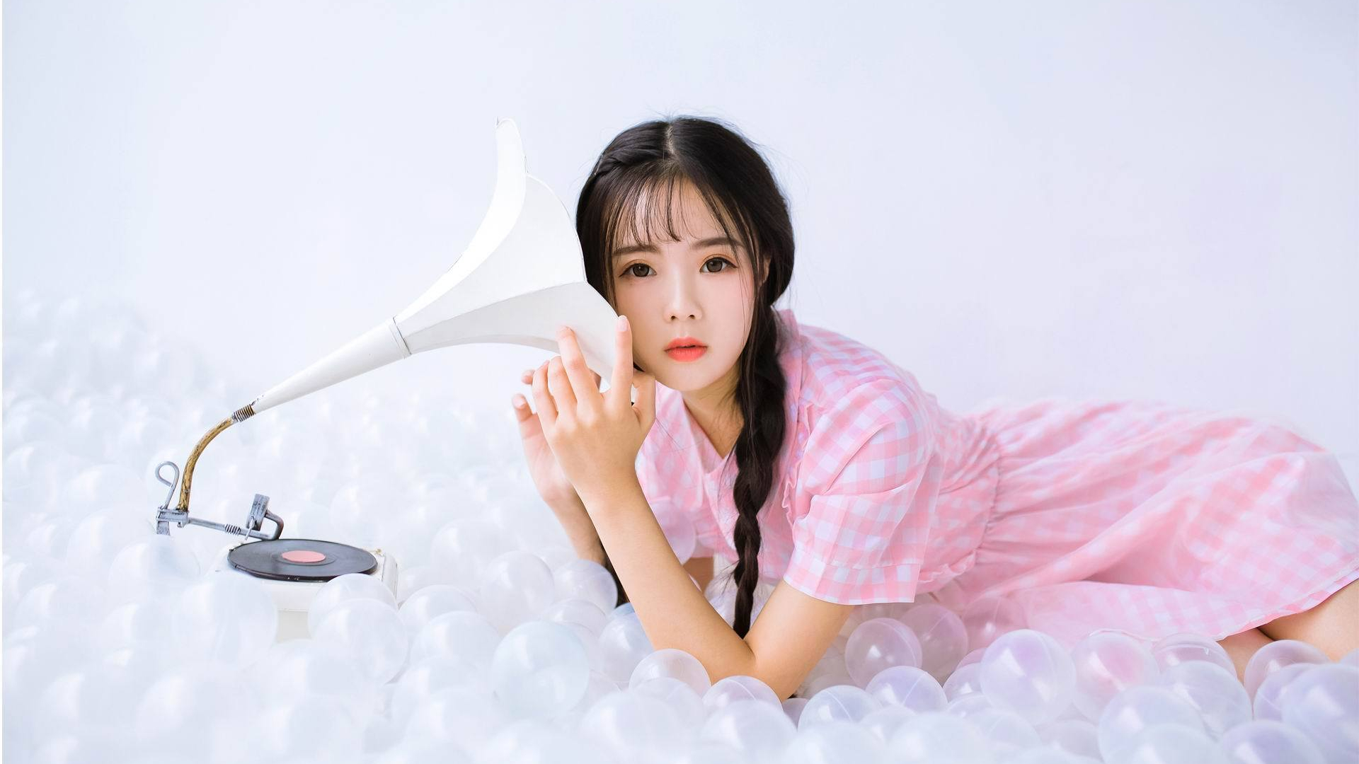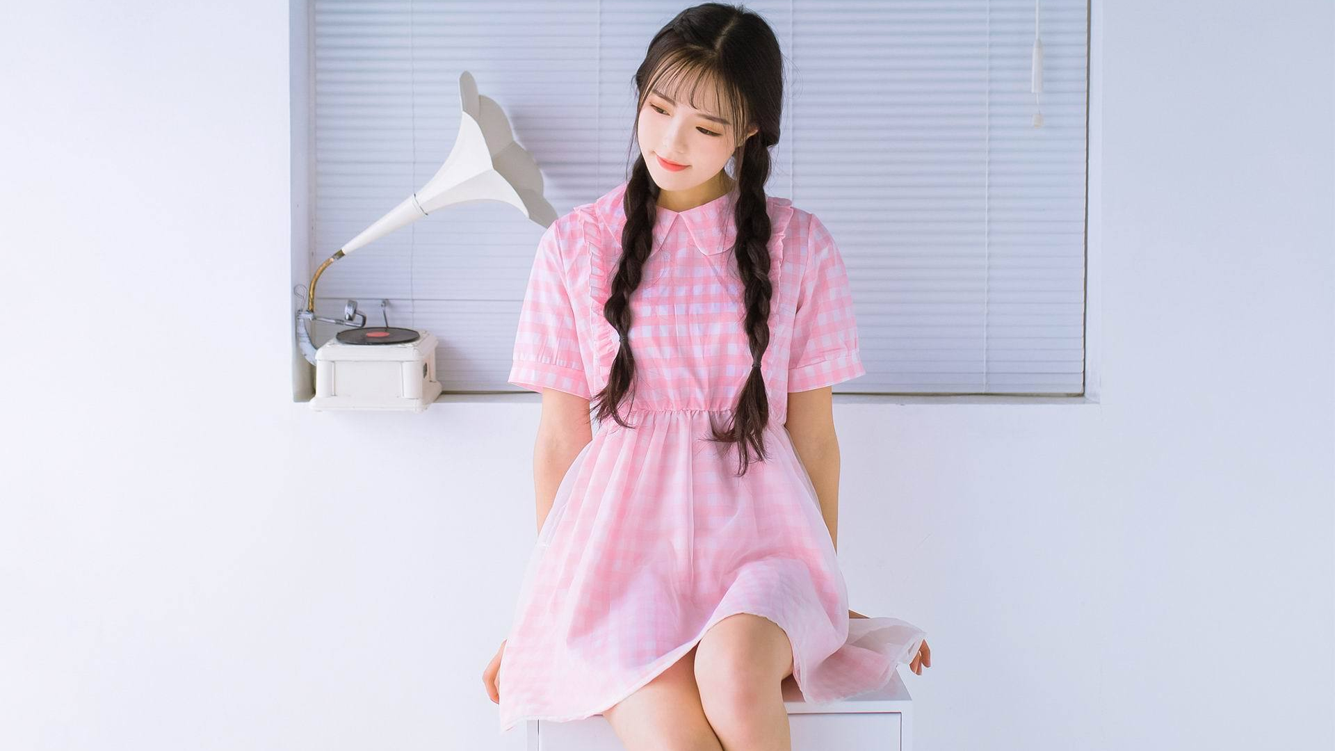 清纯 辫子 留声机